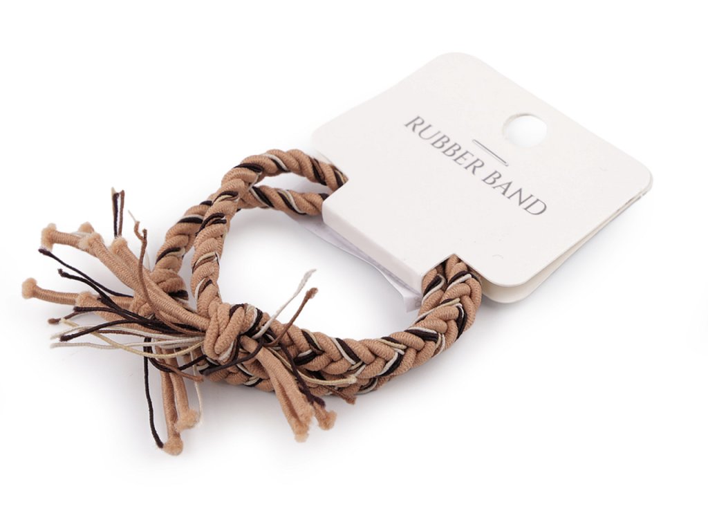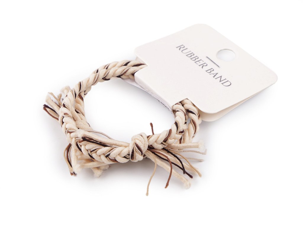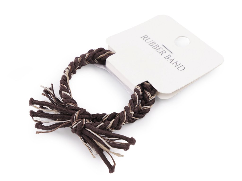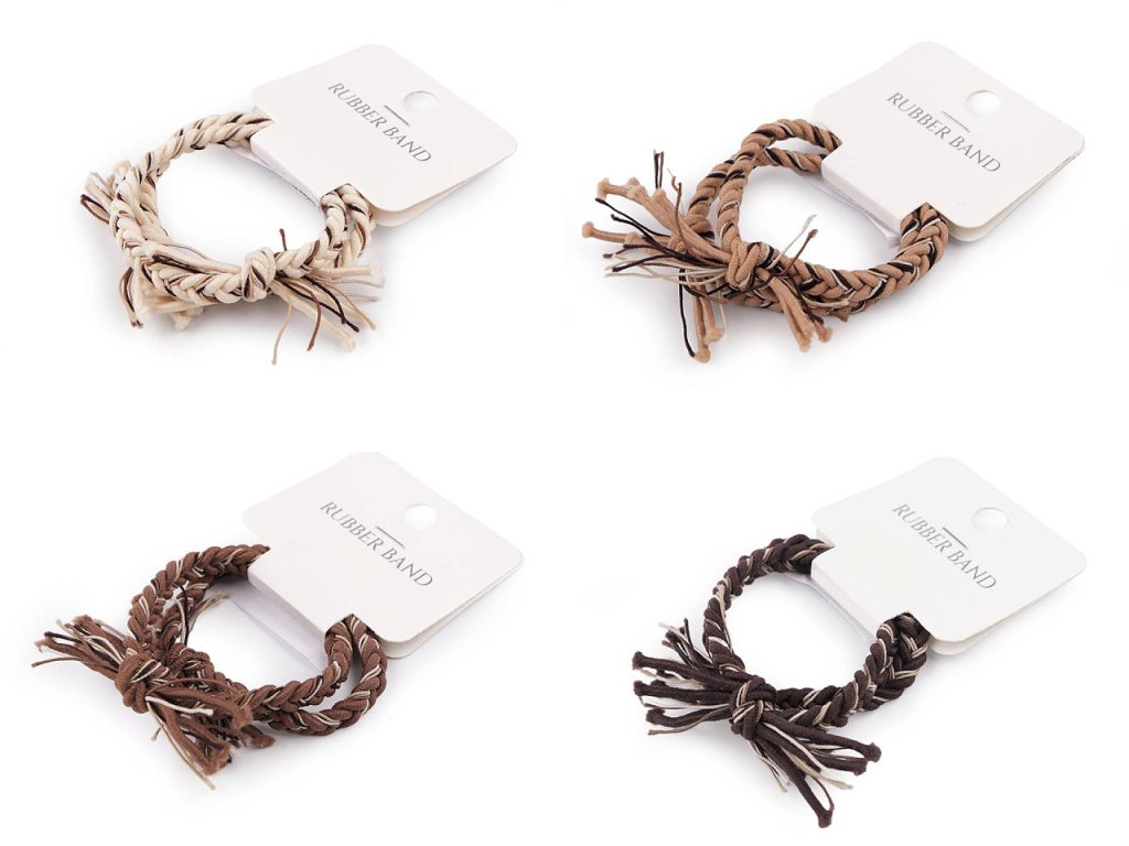 Gumičky do vlasů se střapatými konci vás potěší svým zajímavým designem. Jsou spletené z několika tenčích, barevně ladících gumiček do copánku.