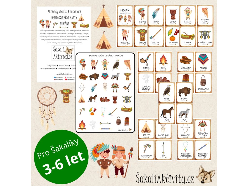 Demonstrační karty s obrázky z indiánského prostředí - teepee, lapač snů, indiáni, šaman, oheň, a vše co k indiánům patří!