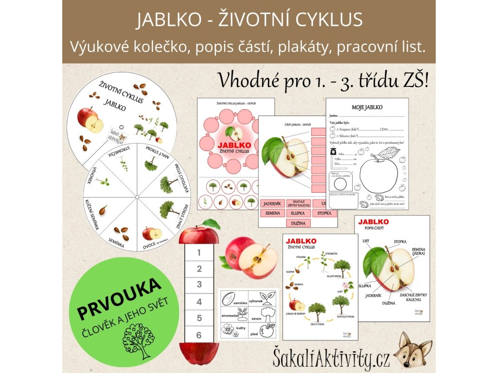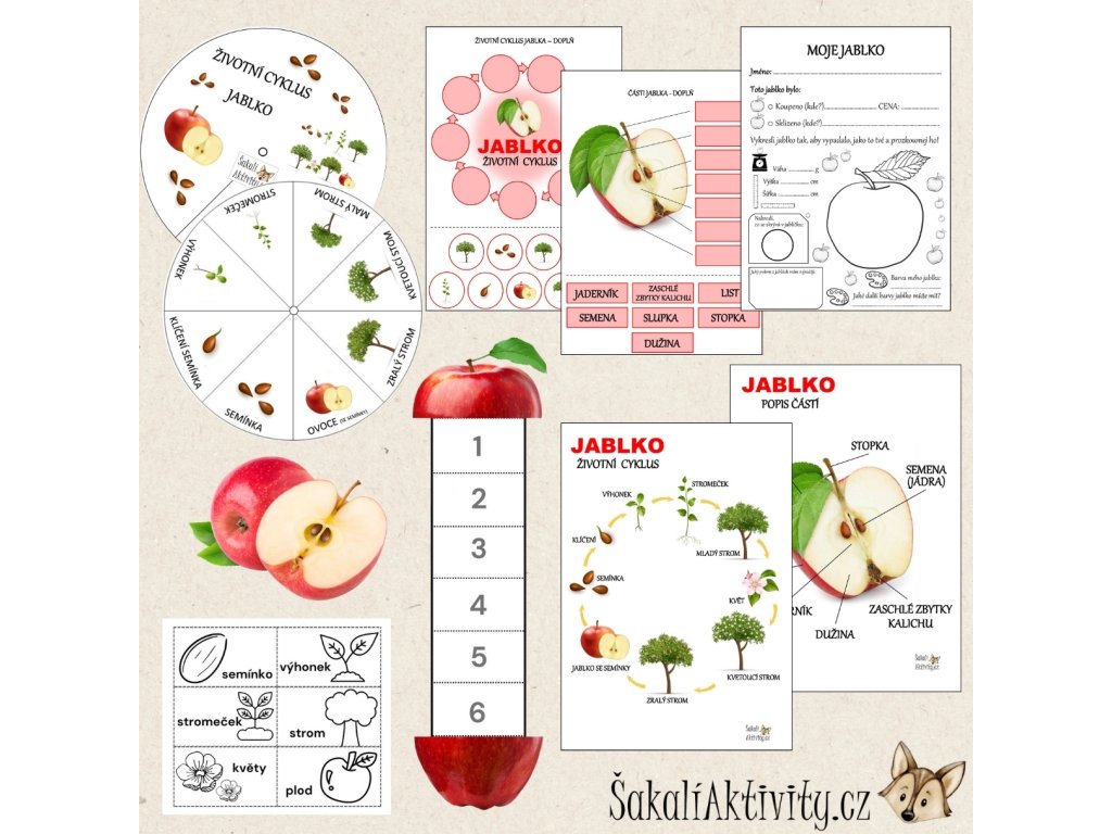 Tato aktivita od ŠakalíAktivity.cz děti hravou formou seznámí s jablkem, jeho částmi a životním cyklem. Soubor obsahuje různé typy pracovních listů a demonstračních materiálů, díky kterým si děti procvičí zrakové vnímání, jemnou motoriku i logické myšlení. Najdete zde výukové kolečko, interaktivní doplňovací archy, demonstrační plakáty a pracovní list k vyplnění. Díky tomu si děti nejen osvojí nové poznatky, ale zároveň je učení baví.