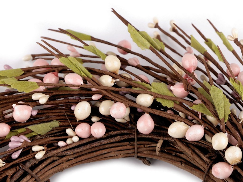 Věnec bohatě zdobený malými barevnými bobulemi vám zútulní interiér během jara a podzimu.