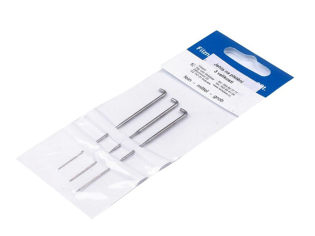 Na jedné kartě naleznete 3 jehly různých velikostí: 1. tenká 0,5 mm, 2. střední 0,6 mm, 3. silná 0,7 mm.
