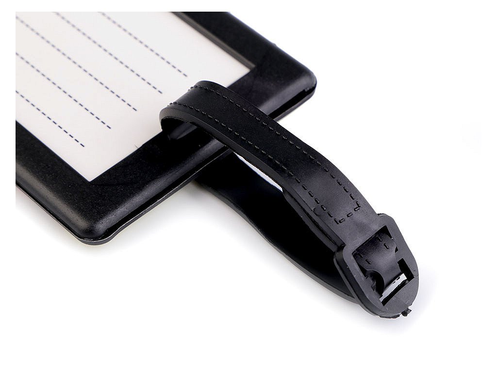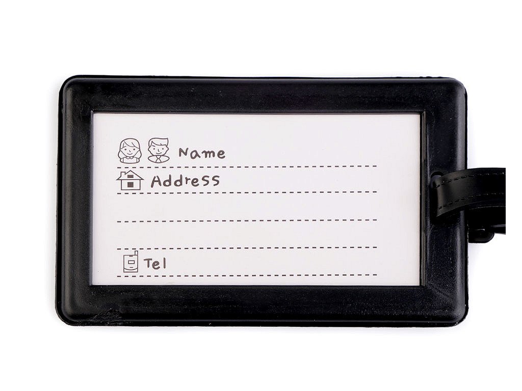 Do příslušných kolonek lze napsat základní údaje jako je jméno, adresa, telefon, popř. e-mail. Součástí visačky je i pásek na přichycení.