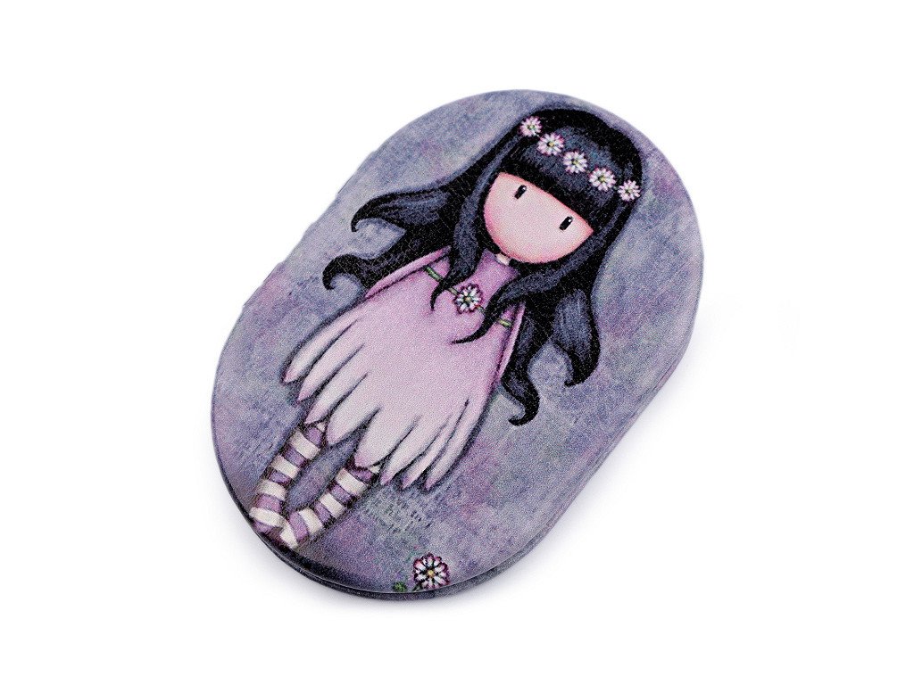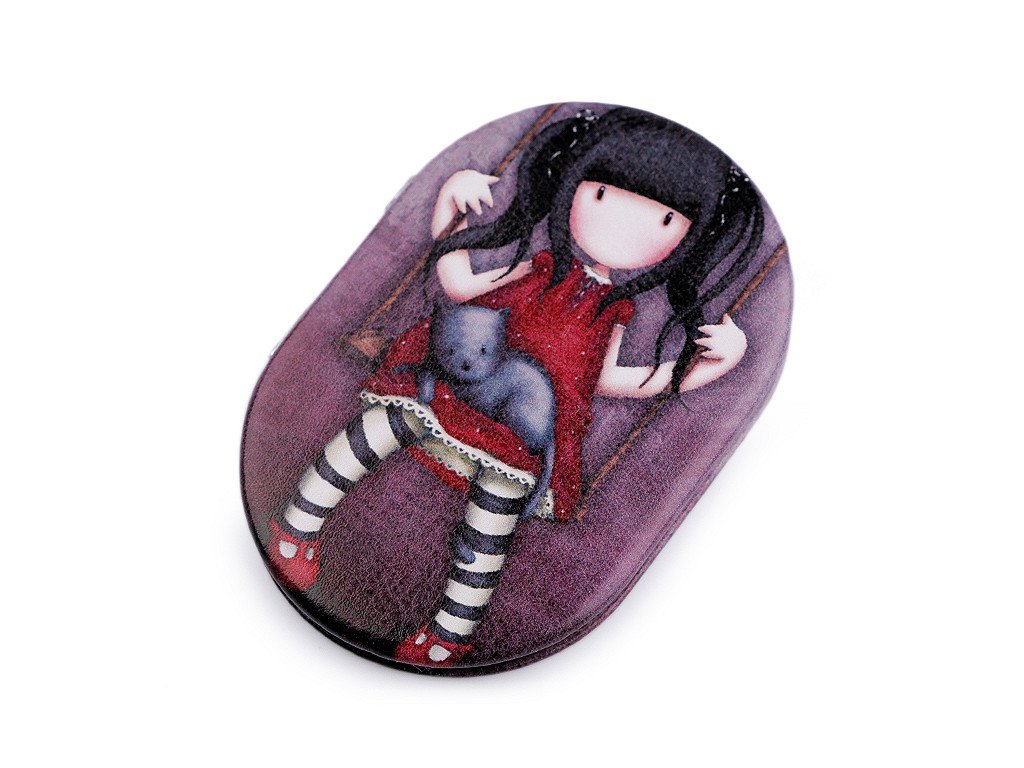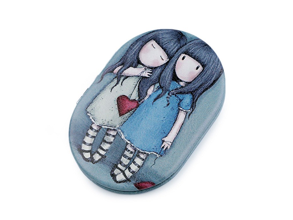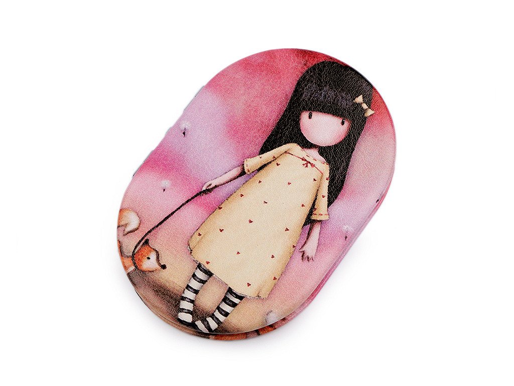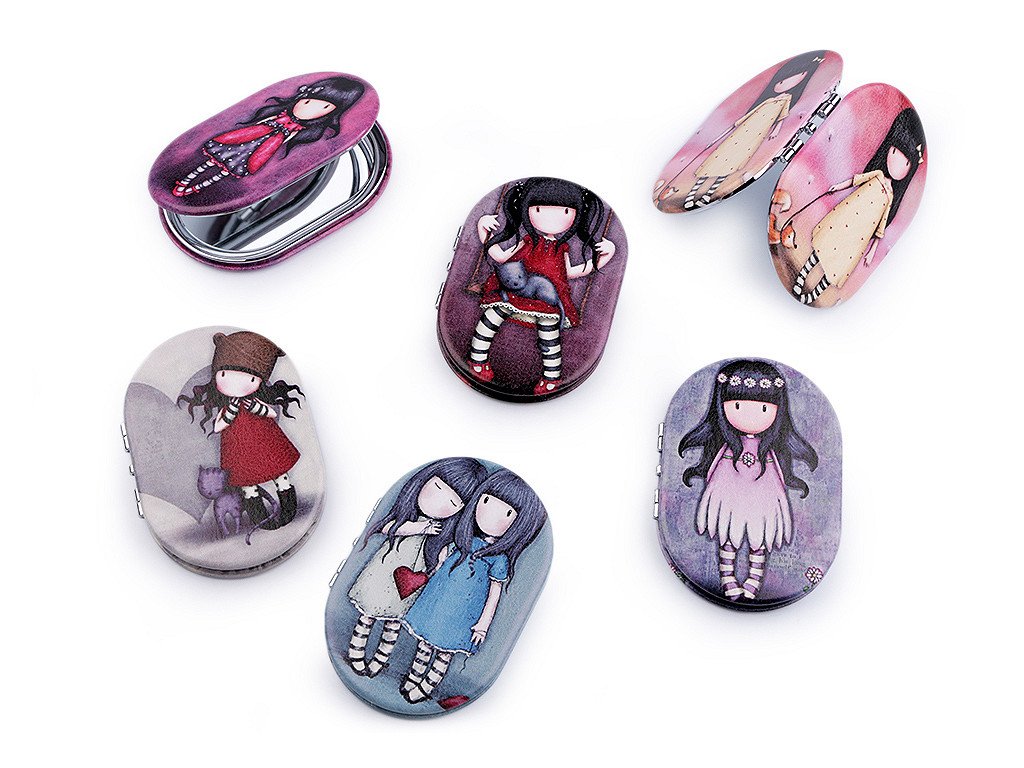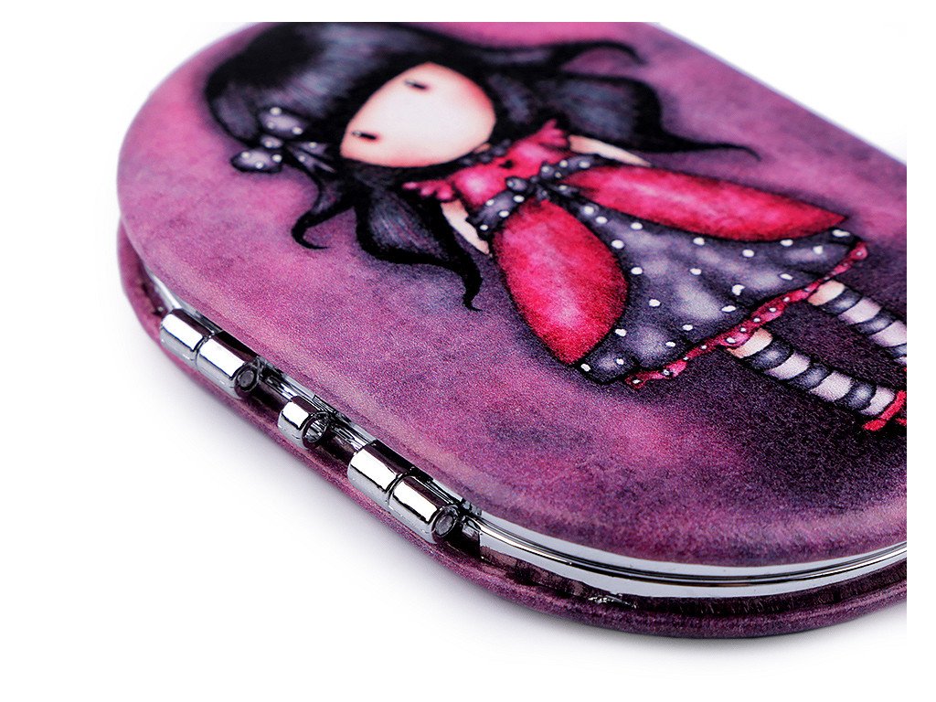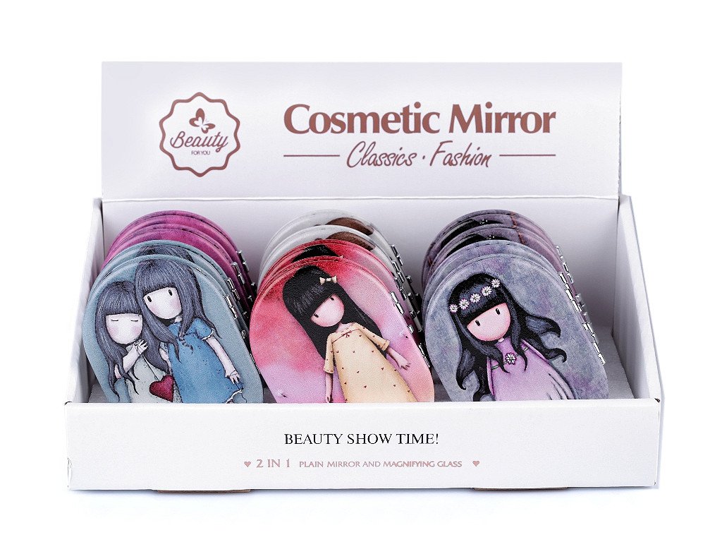 Otevírací zrcátko se stylovým potiskem dívky se hodí pro opravu make-upu kdykoliv během dne.