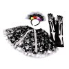 Strašidelný kostým se skládá z tylové sukně, působivé čelenky (s tylem, krajkou a květy) a z rukavic.