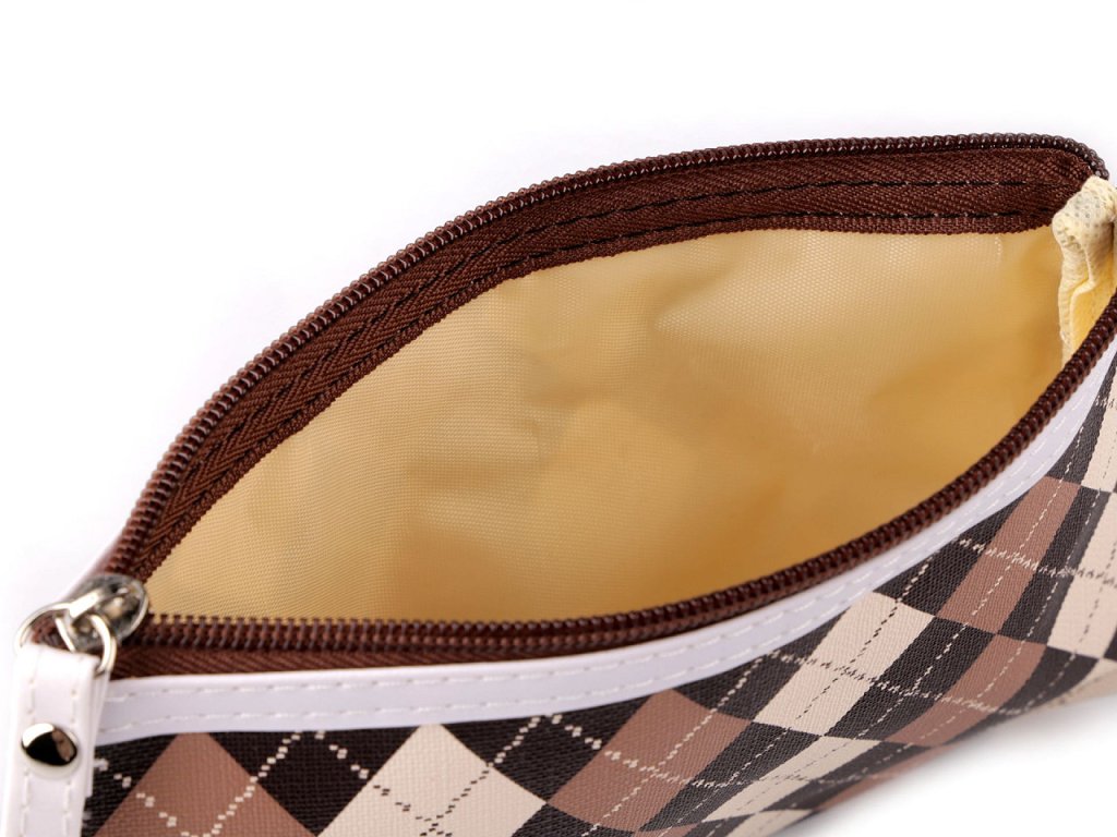 Pouzdro na kosmetiku a drobnosti využijete doma i na cestách. Horní omyvatelný potah má károvaný potisk.