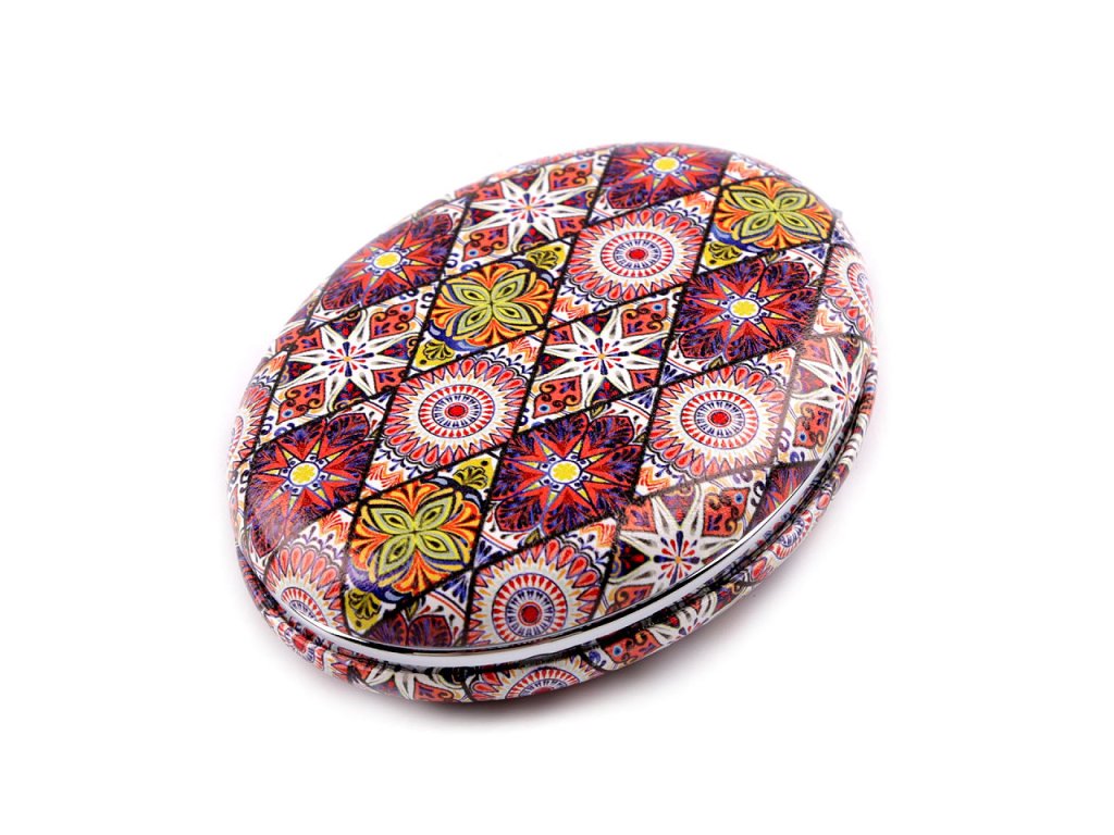 Vejde se do každé dámské kabelky. Má kvalitní zpracování z eko kůže s dekorem mandal. Uvnitř jsou 2 zrcátka, jedno je zvětšovací.