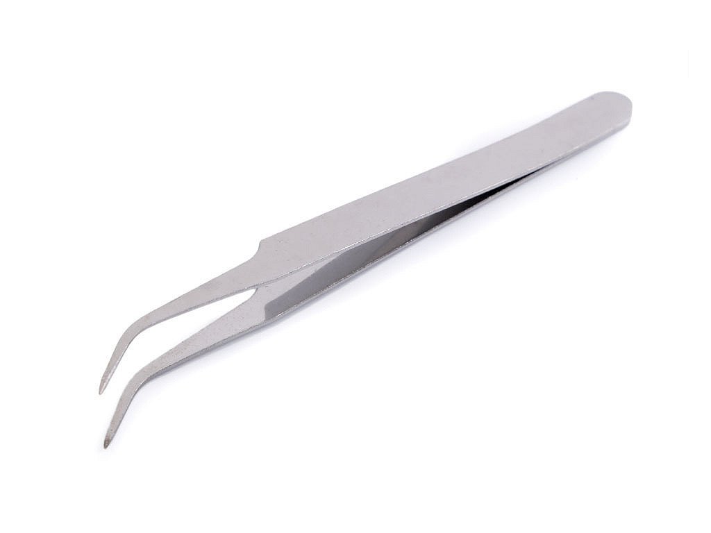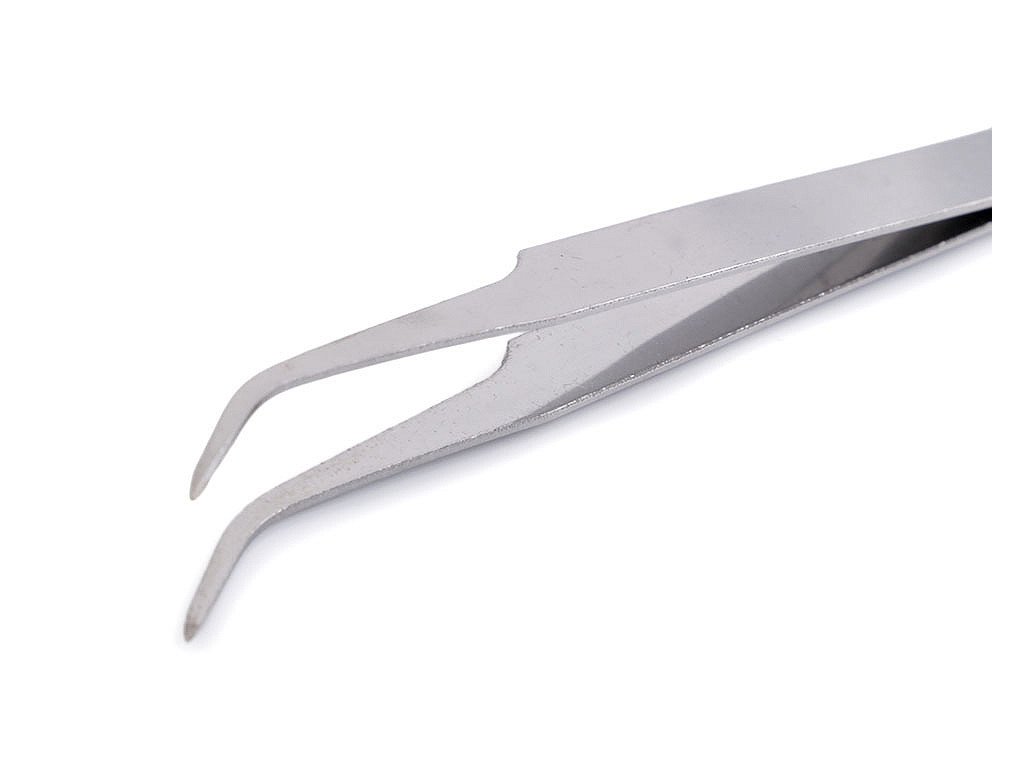 Zahnutá kovová pinzeta je vhodná na většinu drobných prací.