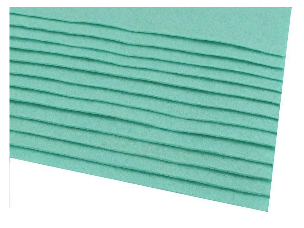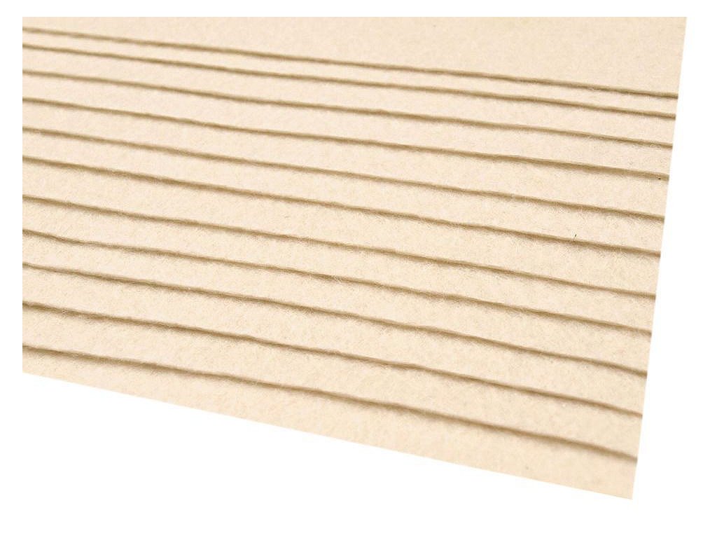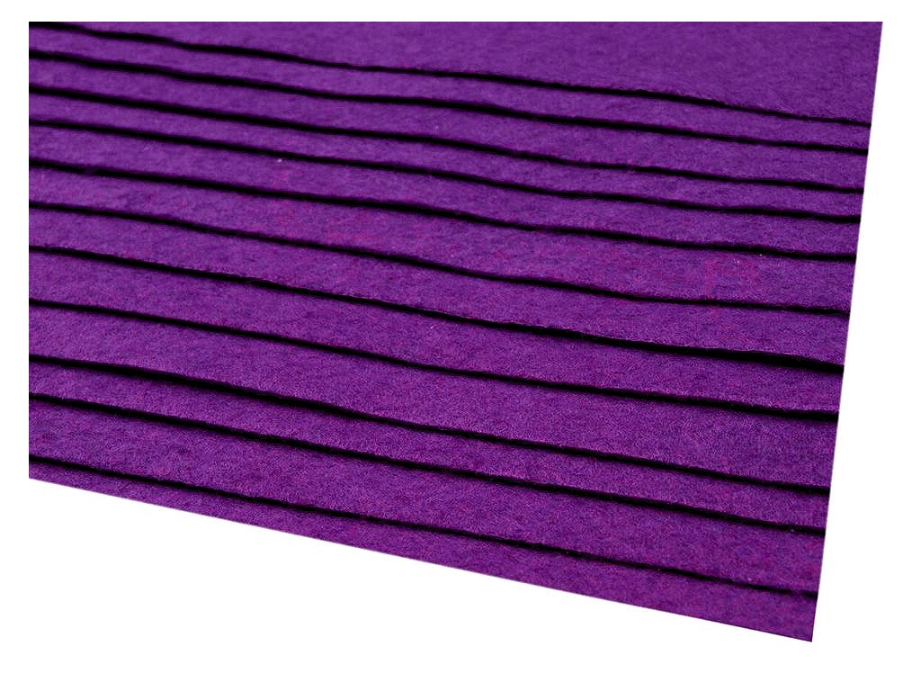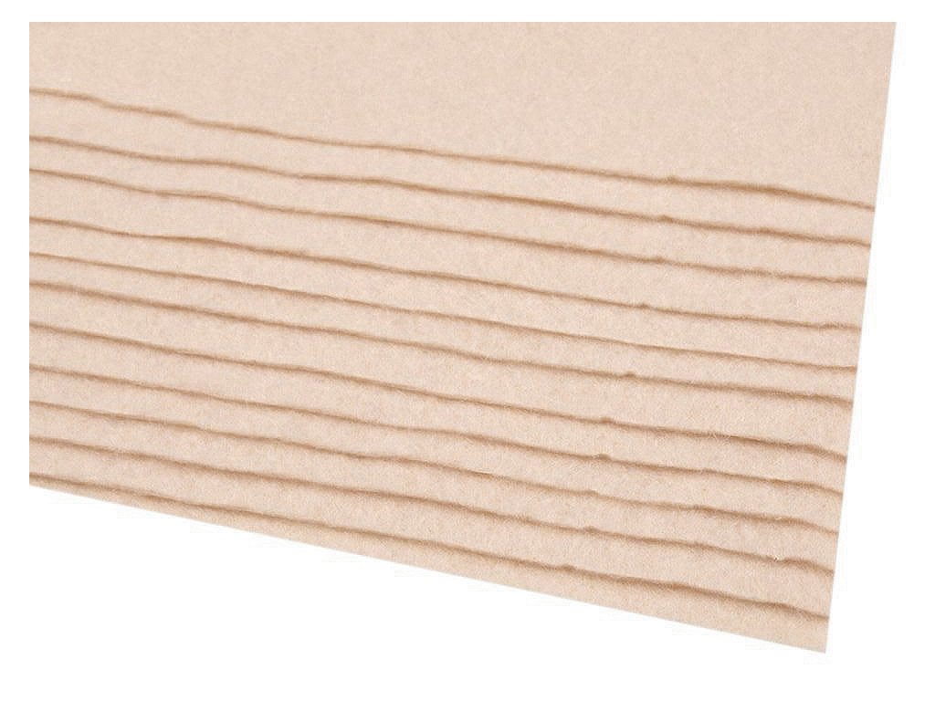 Lze kombinovat s dalšími výtvarnými materiály - plyšové drátky, ovčí rouno. Jeden kus obsahuje 0,06 m². Bílá plsť se materiálově jemně liší od jiných barev.