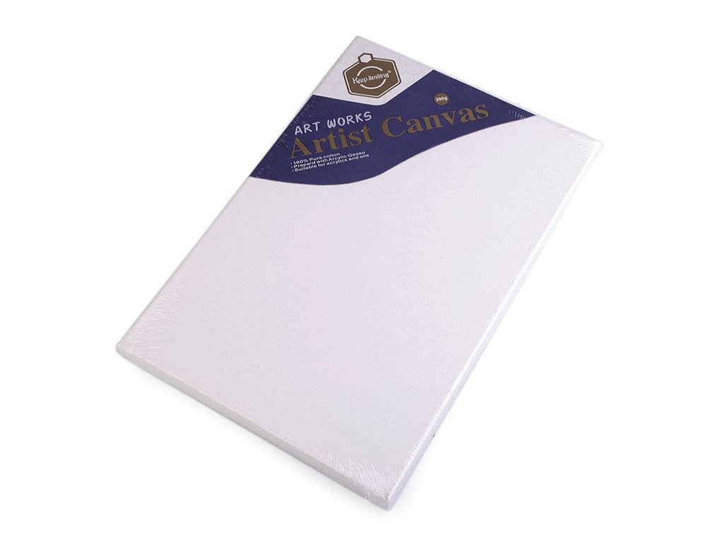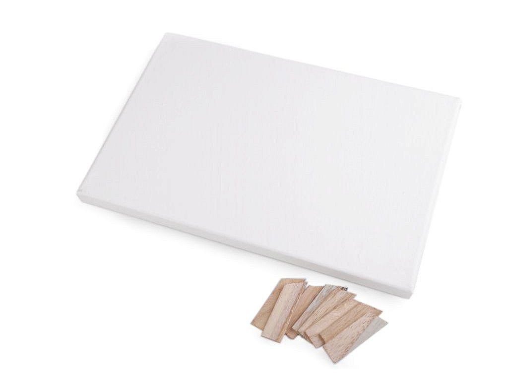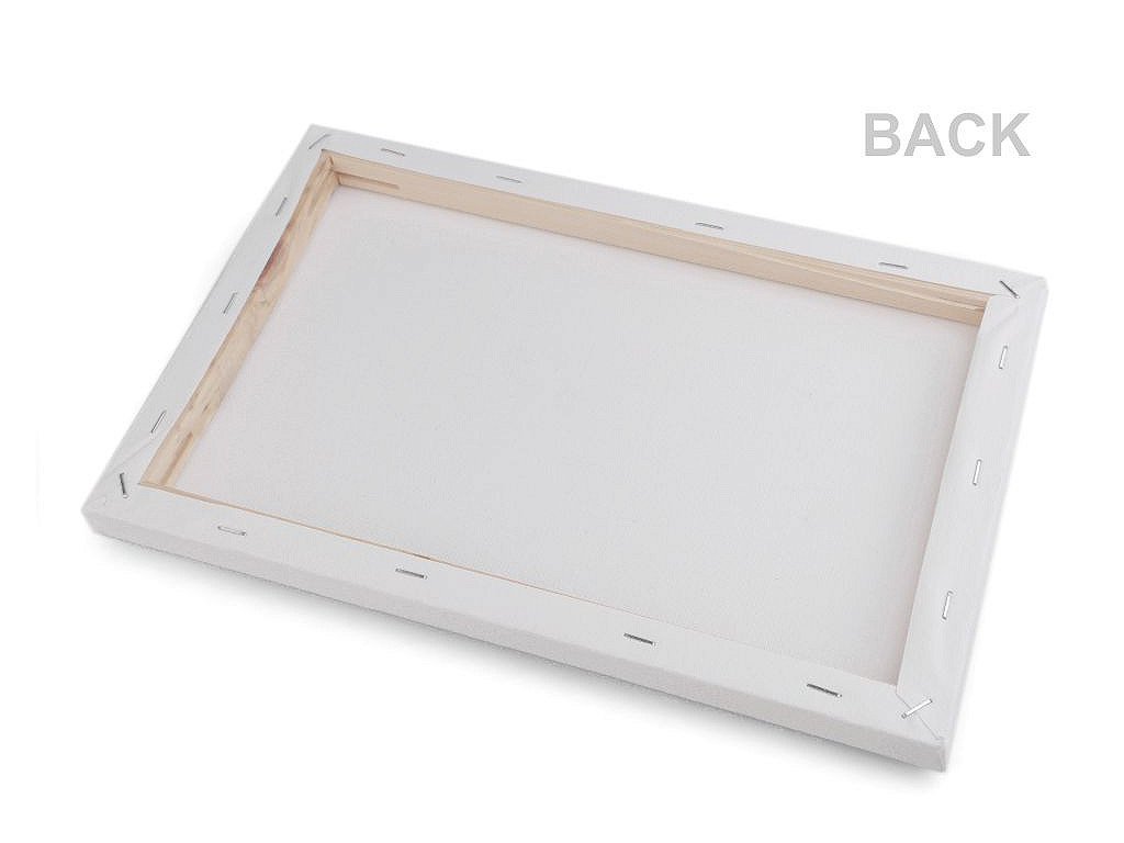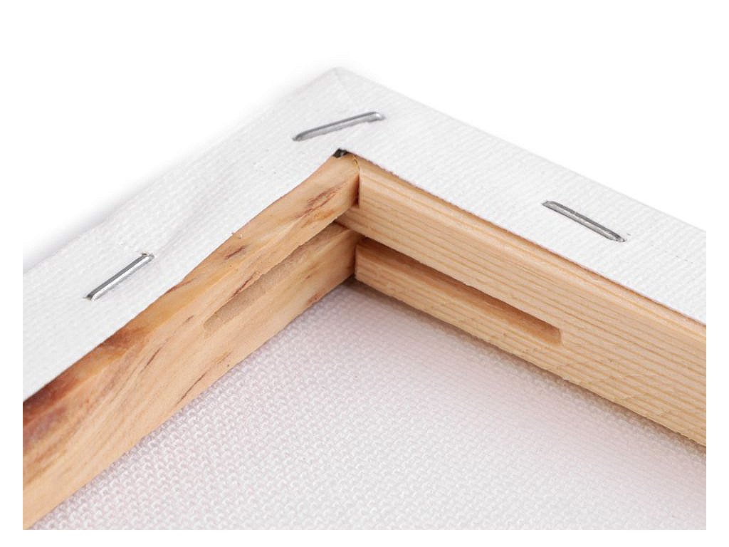 Plátno je natřené univerzální bílou barvou, která zachovává vzhled plátna. Je vhodné na malování akrylovými a olejovými barvami. Pevné natažení přes hrany rámu umožňuje malovat i na boční hrany plátna, hotový obraz již není nutné dodatečně rámovat. K plátnu je navíc sada 8 klínků, k dodatečnému vypnutí plátna.