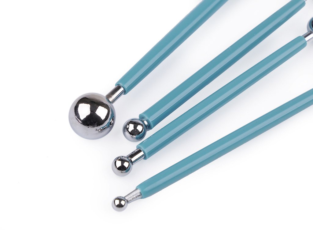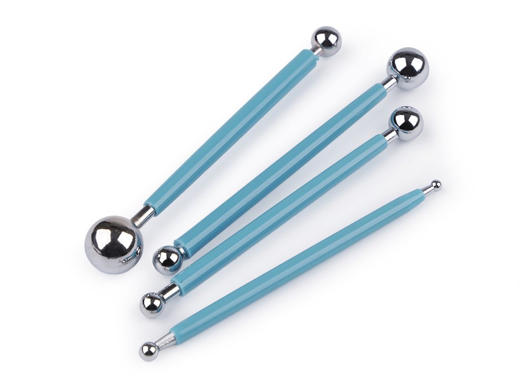 Sada obsahuje: 4 modelovací nástroje, na každém konci mají jinou kuličku. Průměry kuliček jsou 4; 6; 7; 8; 10; 11; 15 a 17 mm.