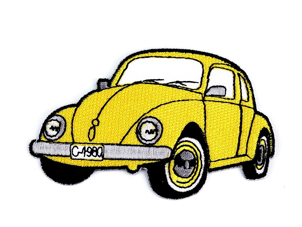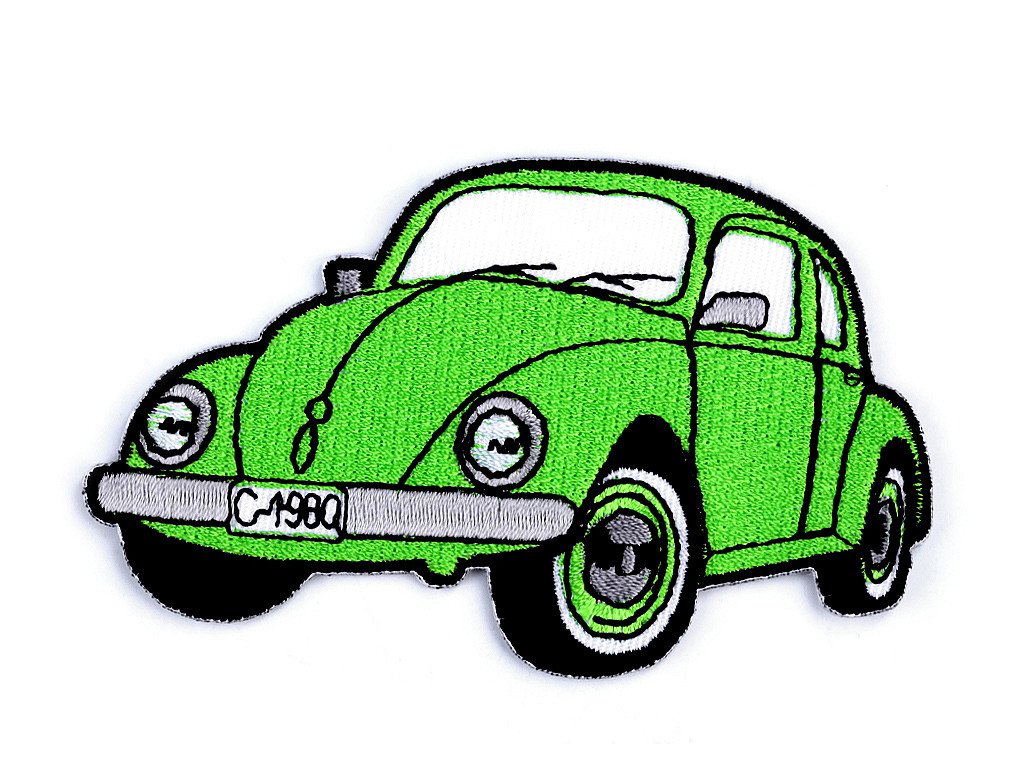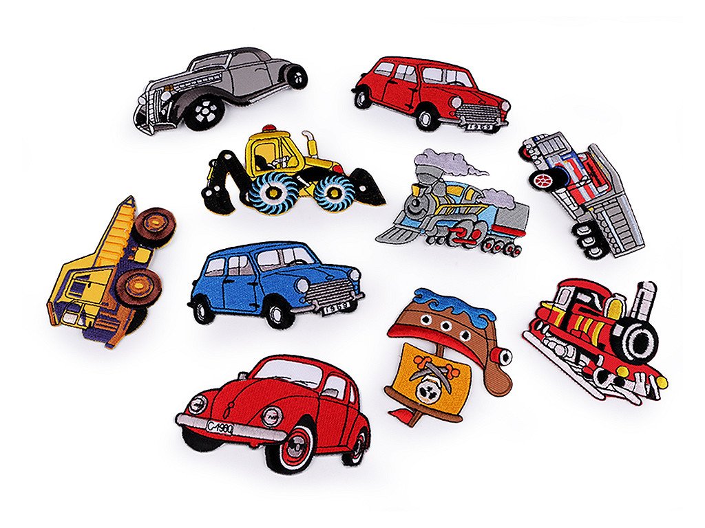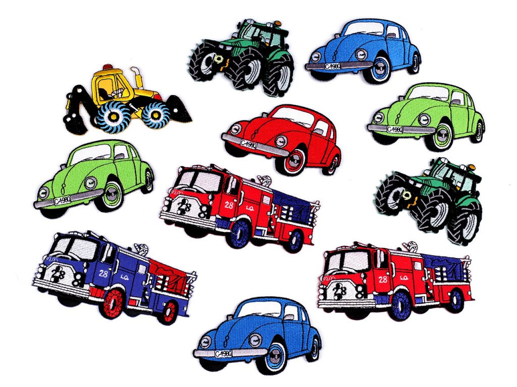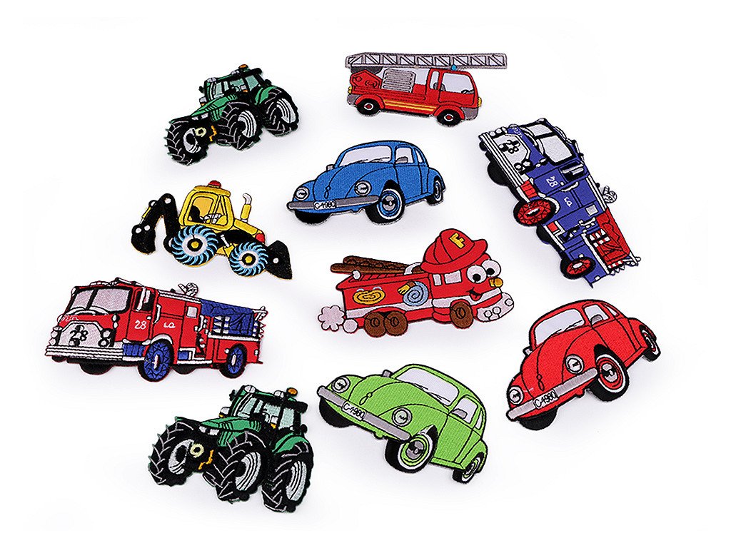Dětský motiv nažehlovačky znázorňuje veselá autíčka.