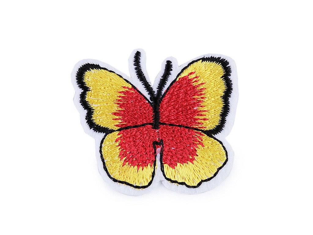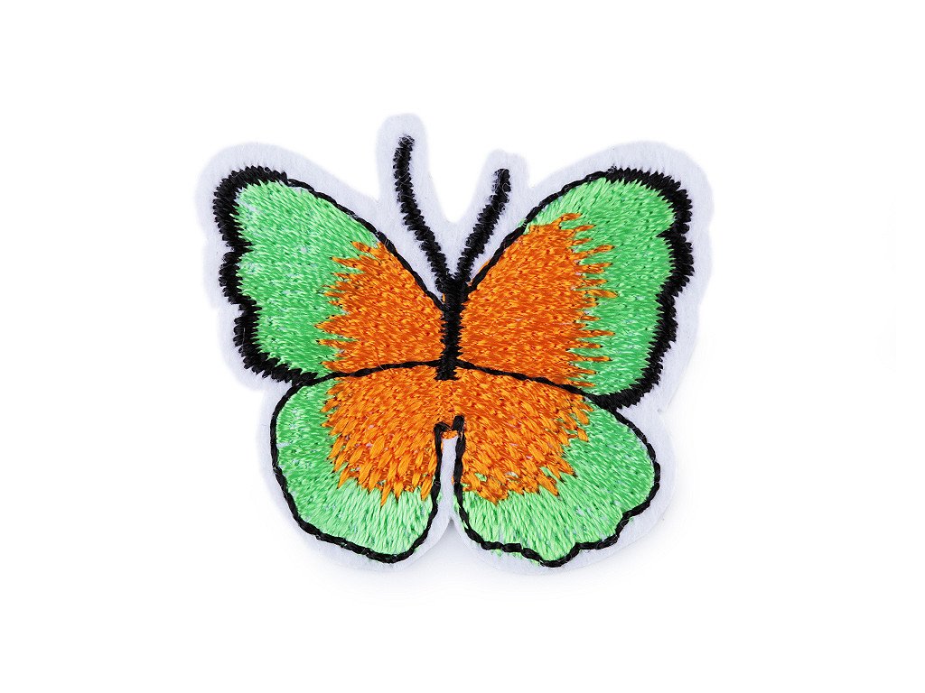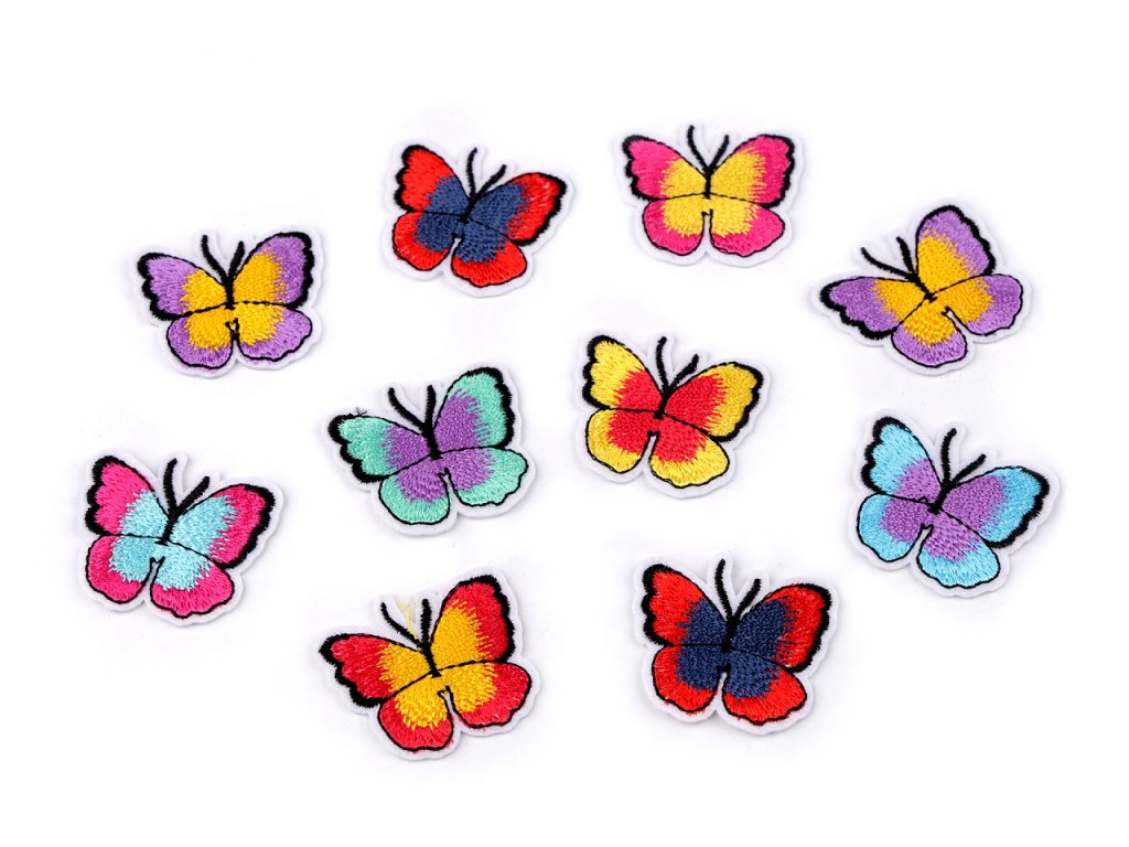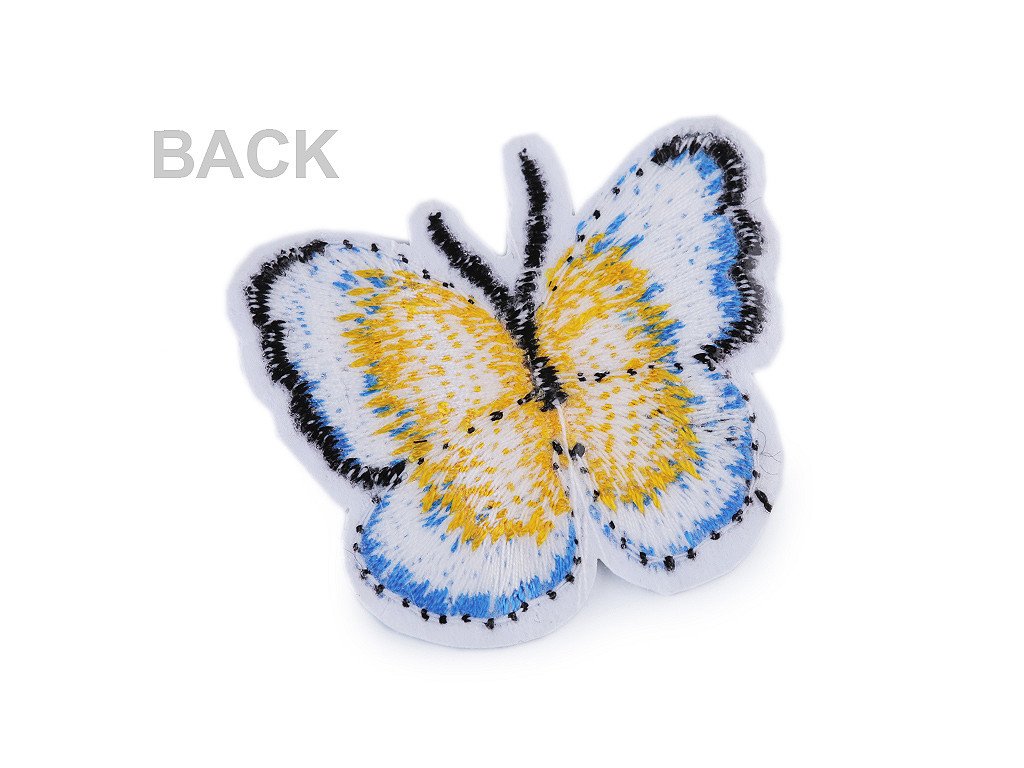 Nažehlovačka motýla má kvalitní provedení. Je celoplošně vyšívaná a jemně se leskne.