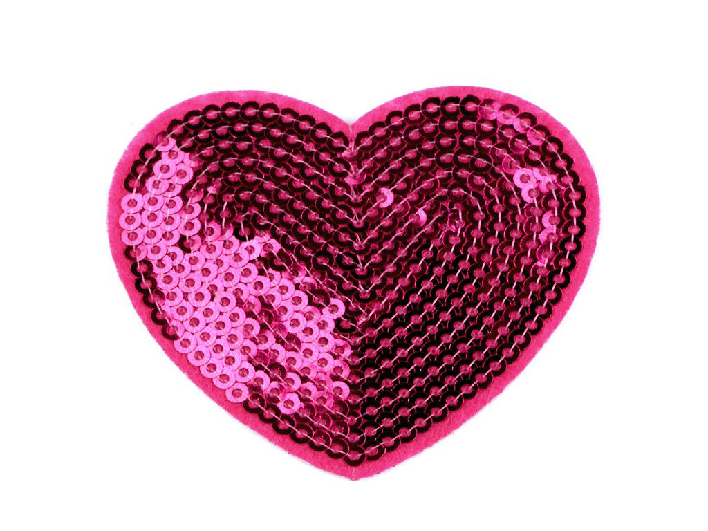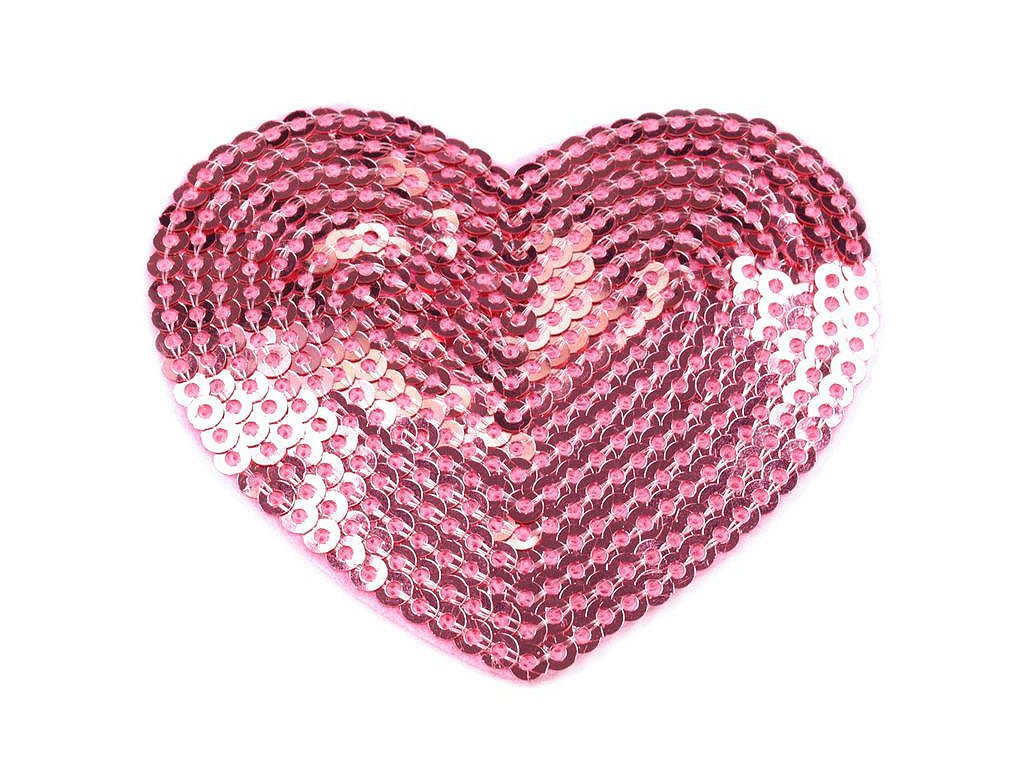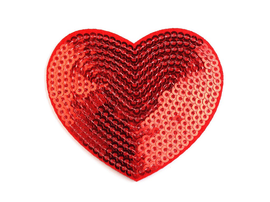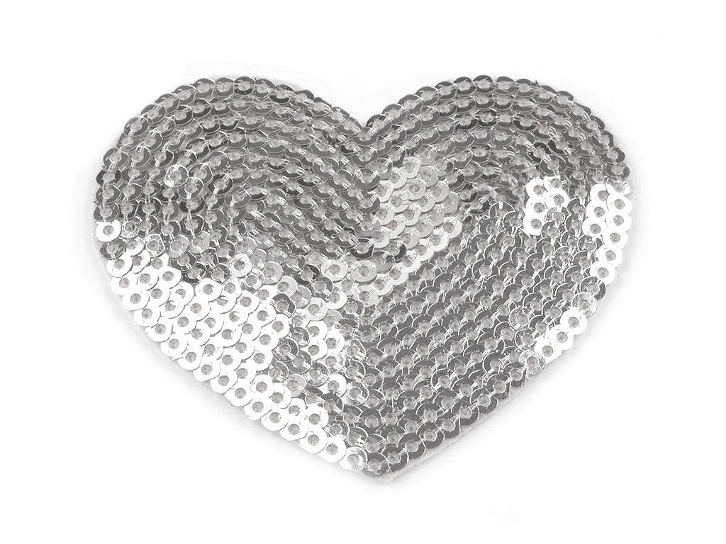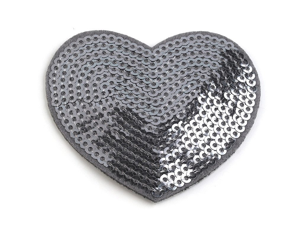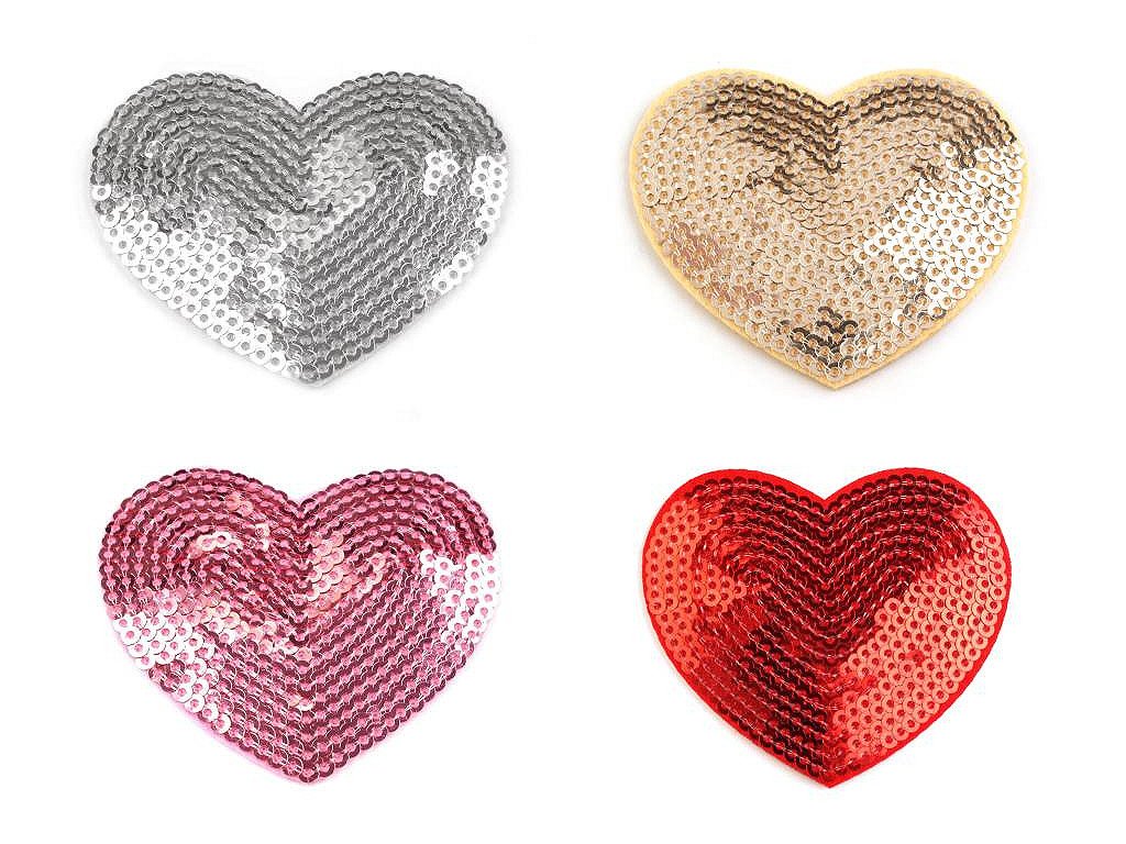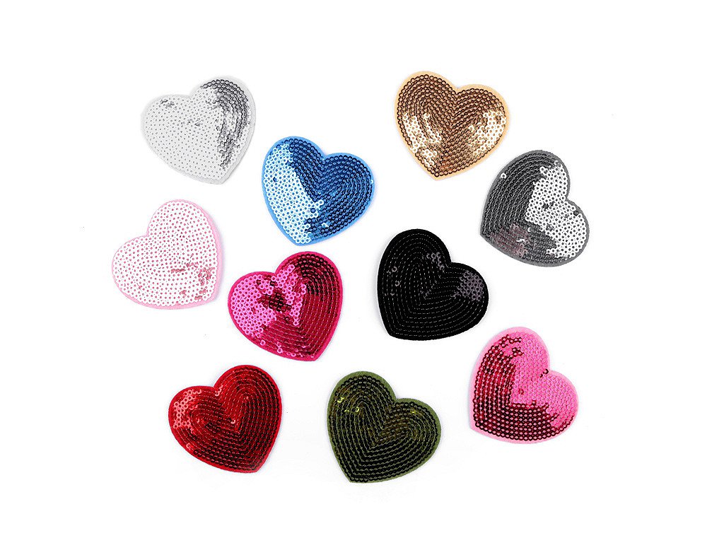 Motiv nažehlovačky zobrazuje srdce, které je zdobeno flitry. Rozměr nažehlovačky je 55 x 60 mm.