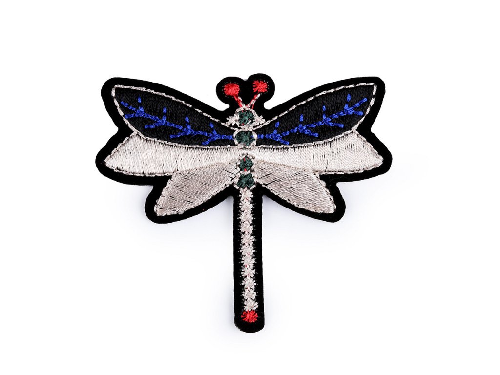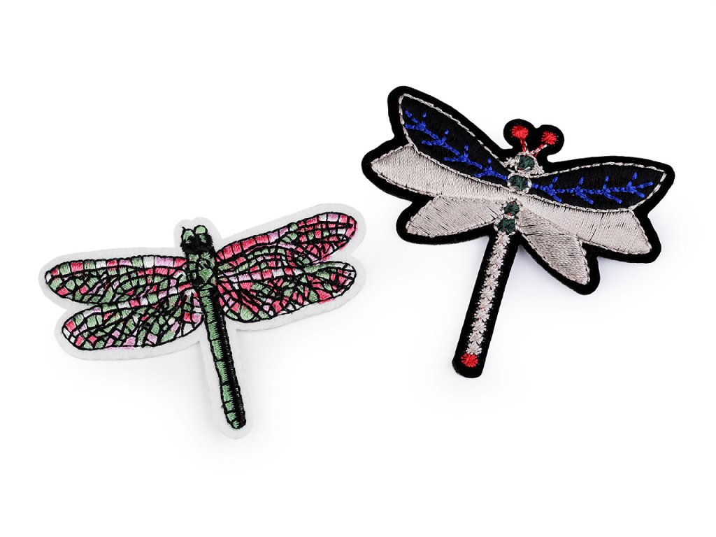 Nažehlovačka s vážkou je velice kvalitní, má detailní celoplošnou výšivku.