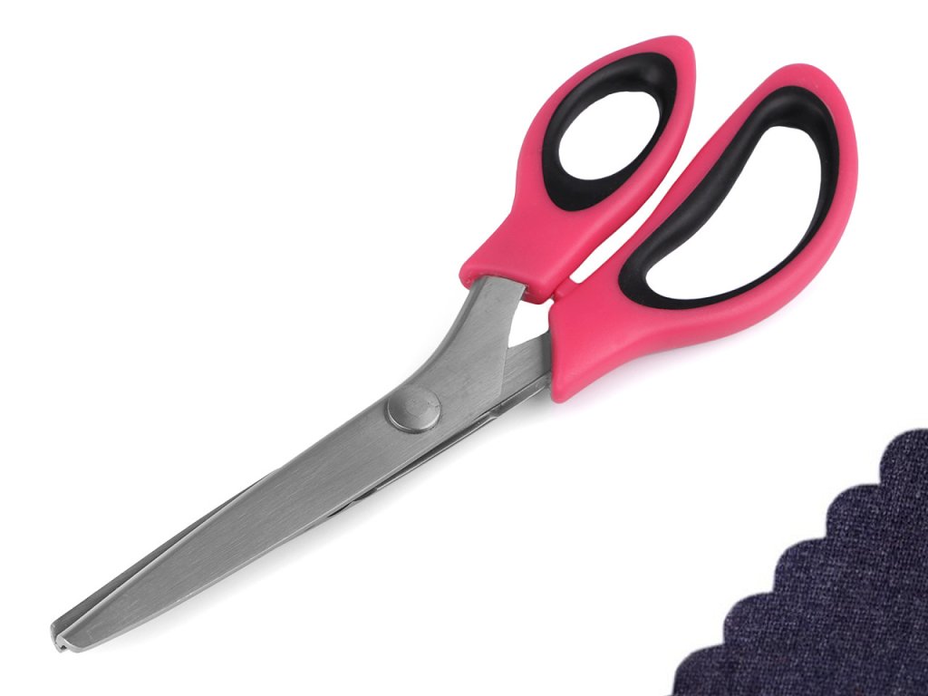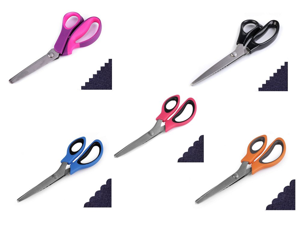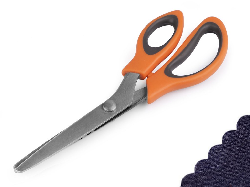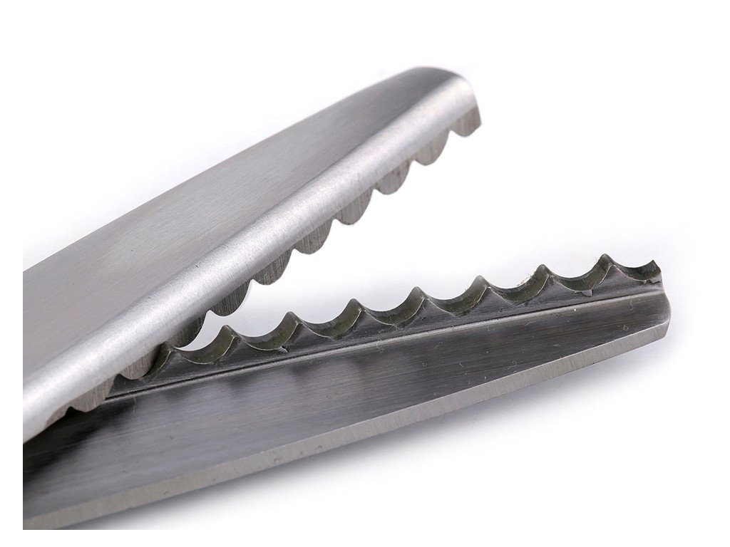 Entlovací nůžky mají po vnitřních stranách čepelí zoubky, kterými po ustřižení látky, papíru i čalounění vytvoříte okraj s obloučky nebo zoubky. Čelisti jsou vyrobeny z nerezavějící oceli. Nůžky jsou určeny na všechny druhy látek, které můžete stříhat klasickými nůžkami. Mají plastovou rukojeť.- Délka ostří: 7,5 cm