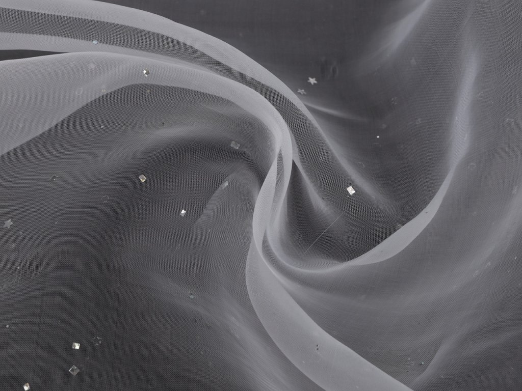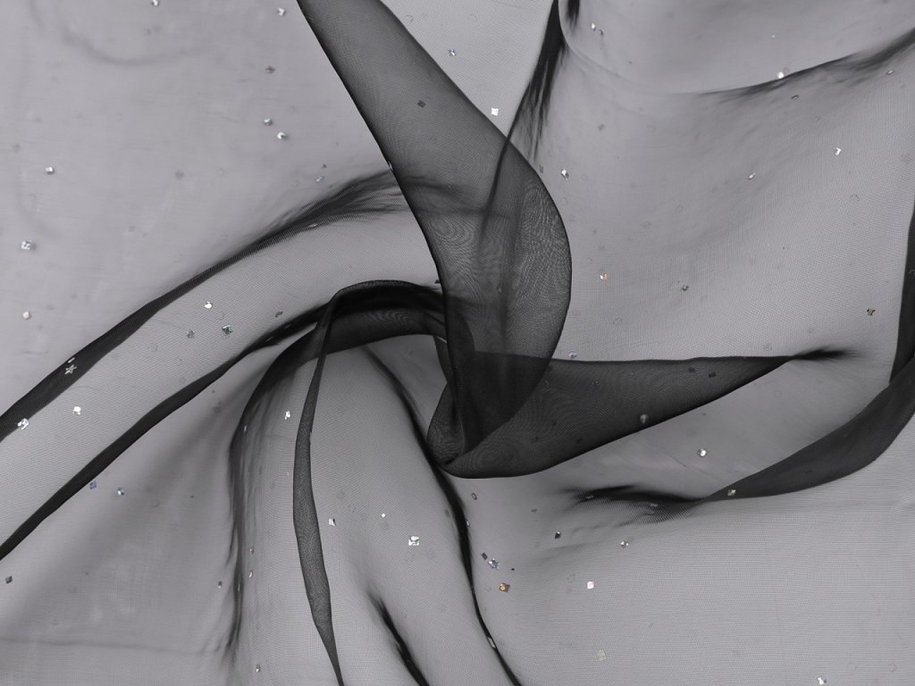 Organzu zdobí hvězdičky a čtverečky s hologramem. Využijete ji na karnevaly, kostýmy, šití sukní apod.