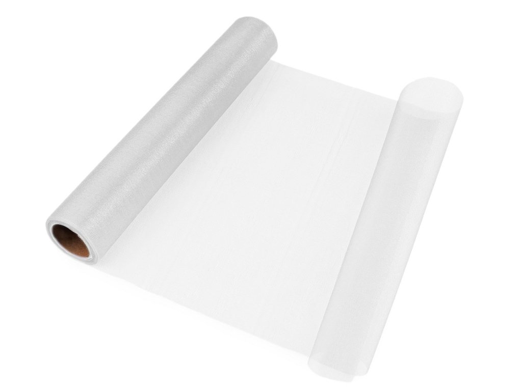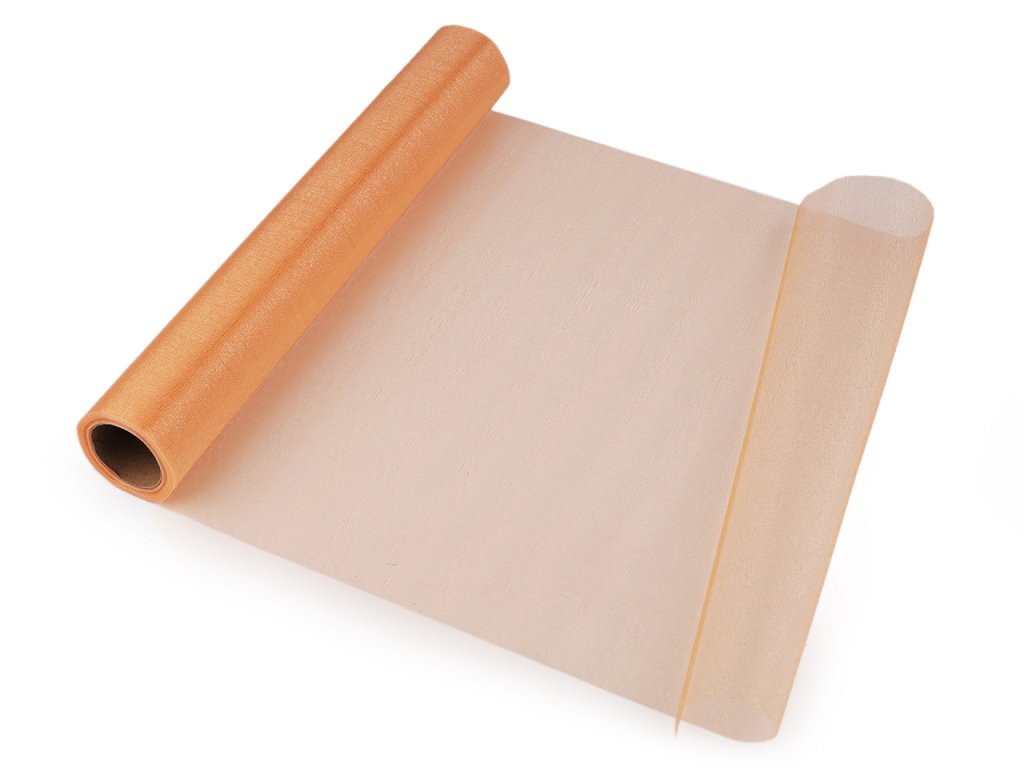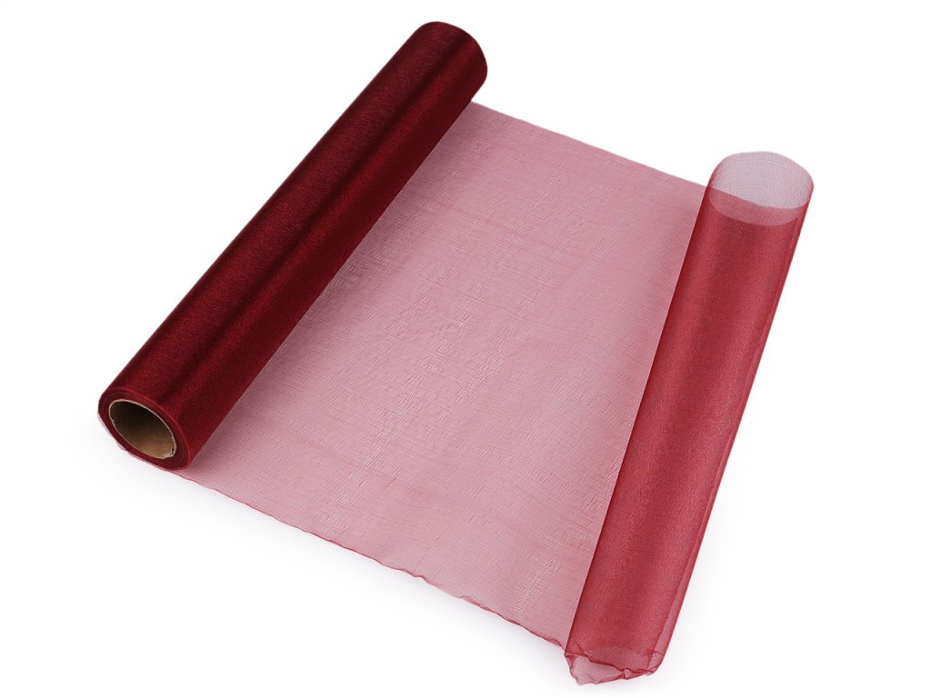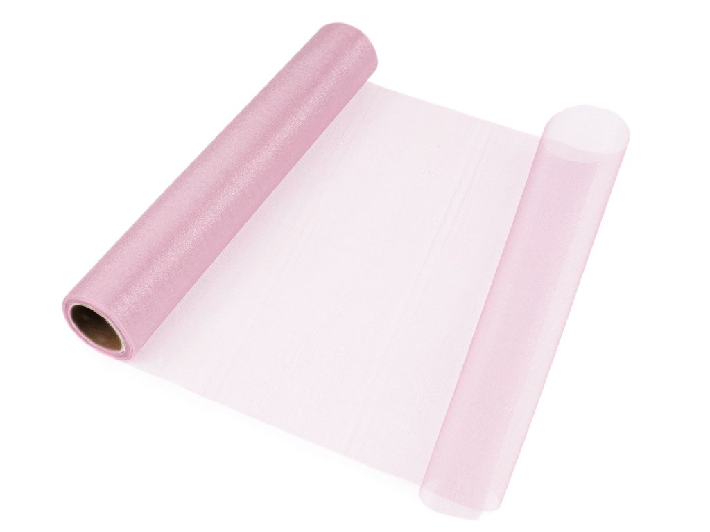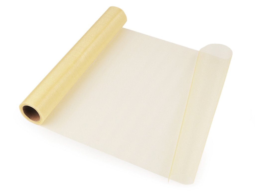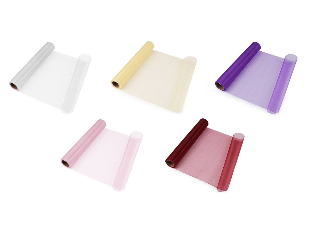 Použití: Organza je oblíbená na slavnostní a svatební tabule, zdobení aut, židlí i květinových vazeb. Gramáž organzy je 19 g/m². V balení může být jeden prostřih.