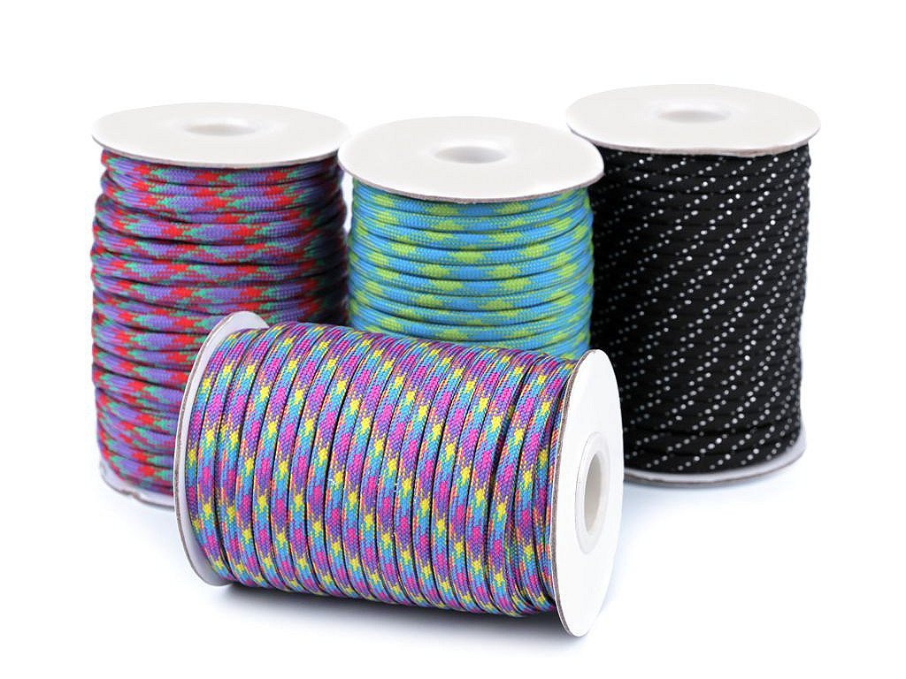 Obal je upletený z polypropylenových vláken. Použití: Padákovou šňůru využijete všude, kde potřebujete cokoliv přivázat.