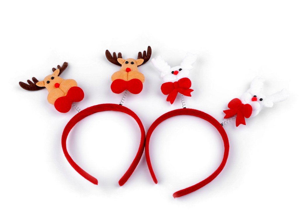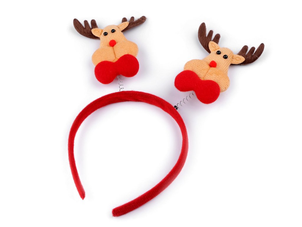 Párty čelenku zdobí roztomilí filcoví sobíci na pružinkách. Je skvělým doplňkem na vánoční večírky, oslavy, zábavu nebo Silvestra.