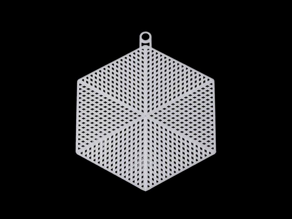 Plastová mřížka je vhodná k výrobě vyšívaných obrázků a dekorací. Nahoře má očko k zavěšení.