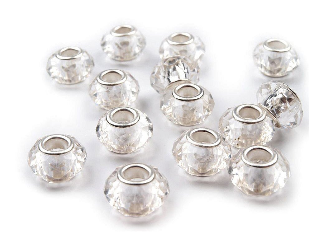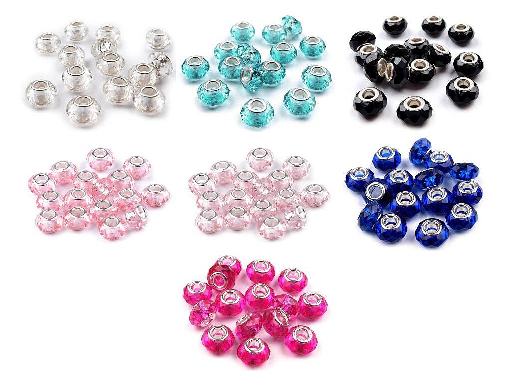 Broušené korálky s velkým průvlekem jsou vyrobeny z plastu a kovu. Jsou vhodné pro navlečení na tzv. šroubovací hadí řetízek.