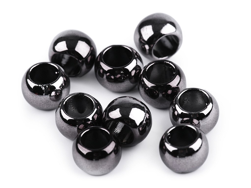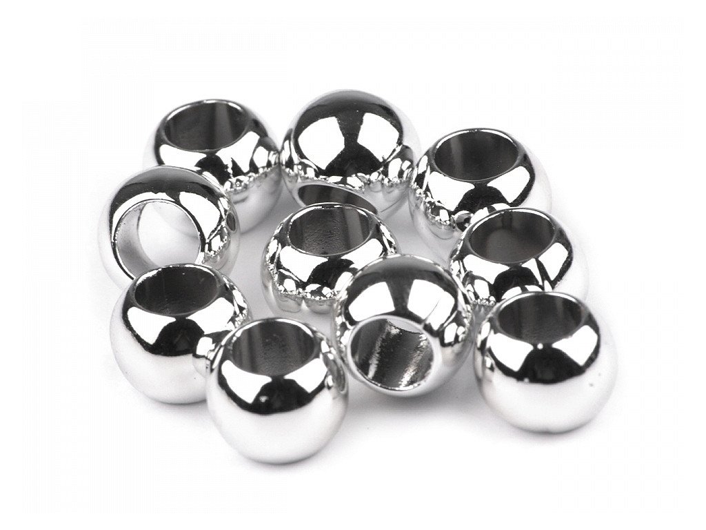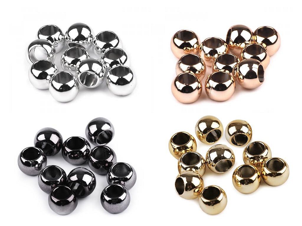 Plastové korálky s velkým průvlekem mají vysoký lesk, který věrně imituje opravdový kov.
