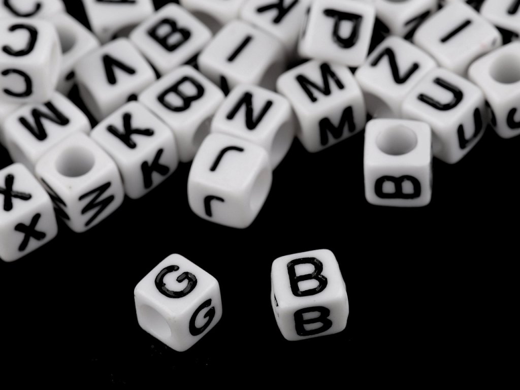 Plastové korálky s písmeny kostka 6 mm