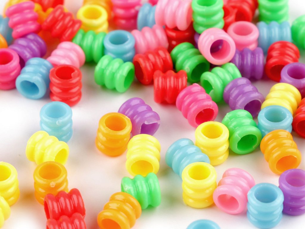 Plastové korálky ve tvaru rýhovaného válečku nadchnou děti i dospělé. Jsou lesklé, mají syté barvy.