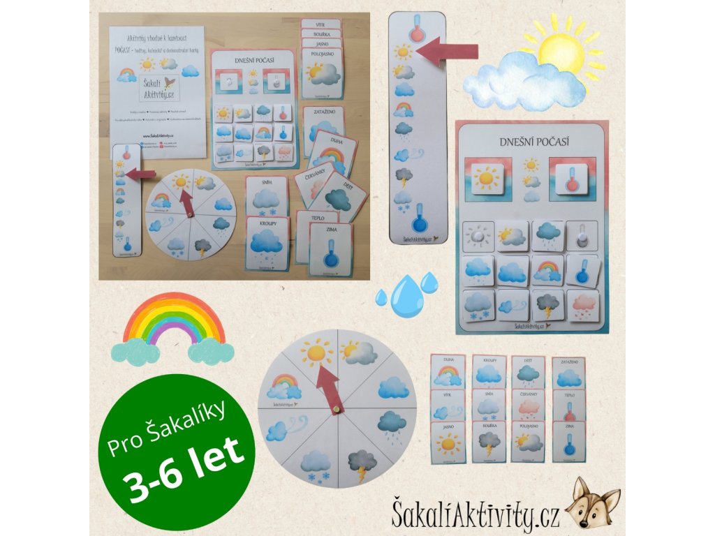 Hravá vzdělávací aktivita Počasí pro děti je ideální pomůckou k pozorování a zaznamenávání proměn počasí během roku. Děti se učí pojmenovávat a sledovat aktuální počasí, porovnávat jeho změny a rozvíjet tak své povědomí o přírodních jevech.
