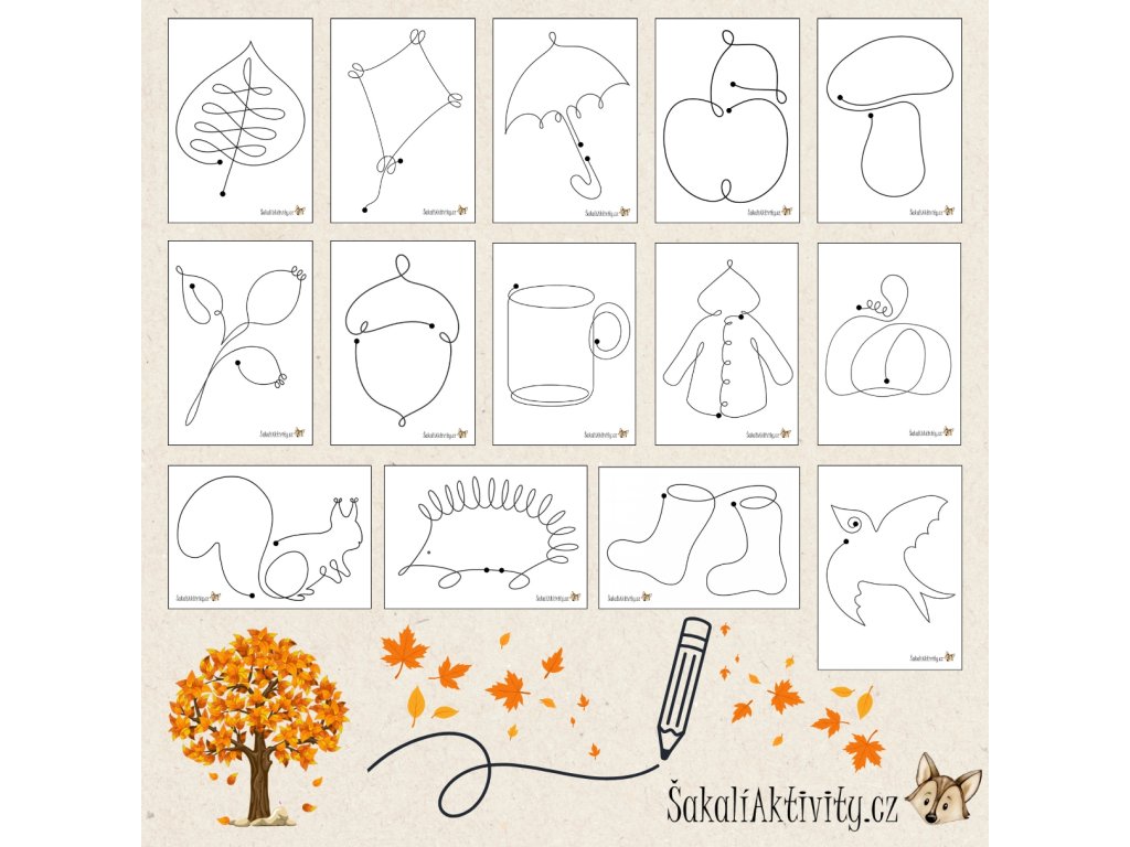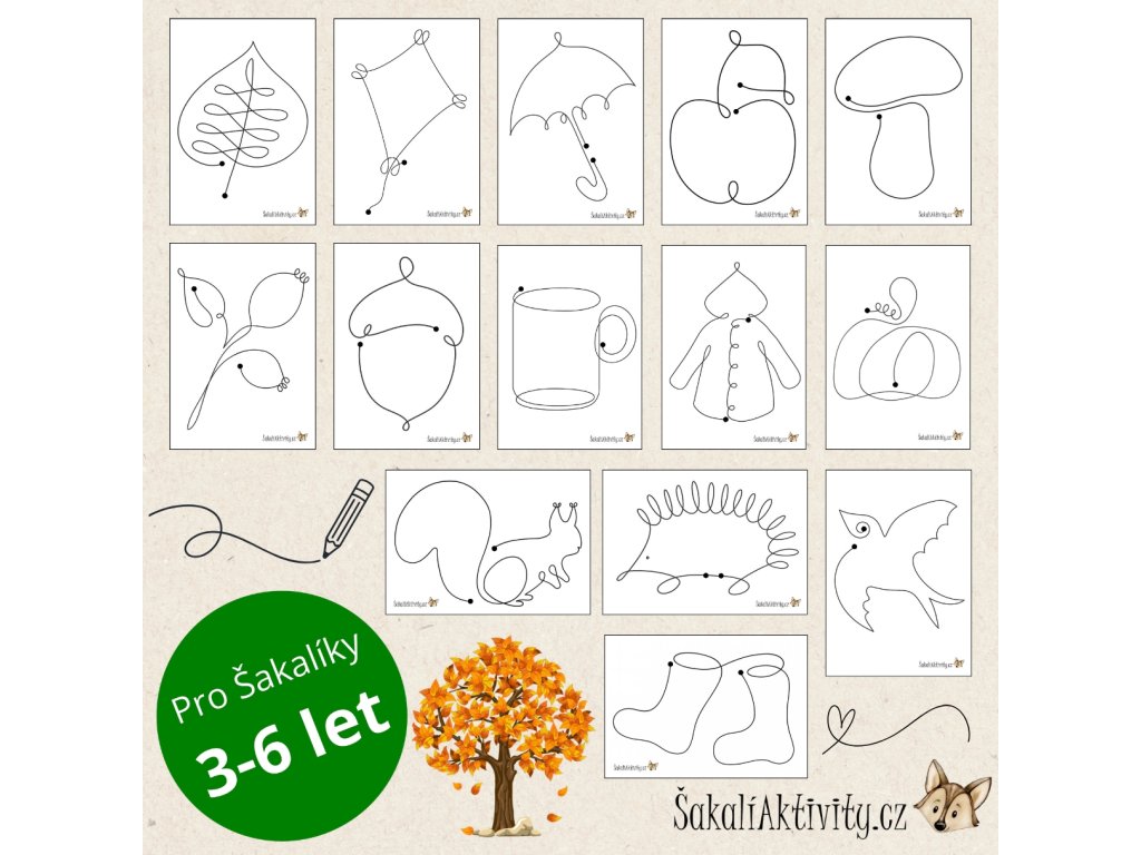 Objevte zábavné grafomotorické listy s podzimními motivy, které pomáhají dětem rozvíjet jemnou motoriku, koordinaci oka a ruky i správný úchop tužky. Úkolem je obkreslit každý obrázek jedním tahem, bez zvednutí tužky z papíru – ideální aktivita pro předškoláky i školkáčky.