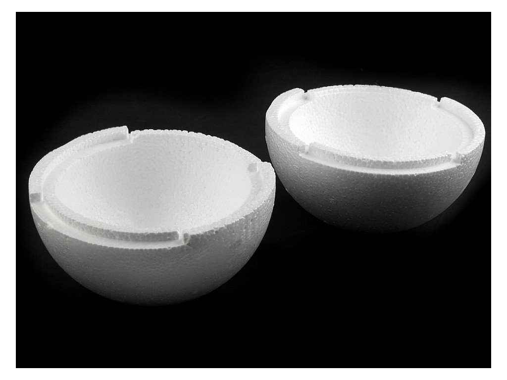 Polystyrenová koule se skládá za dvou polokoulí. Oceníte její kvalitní vypracování a víceúčelové použití.