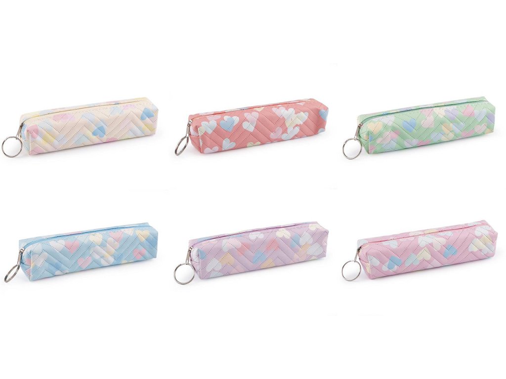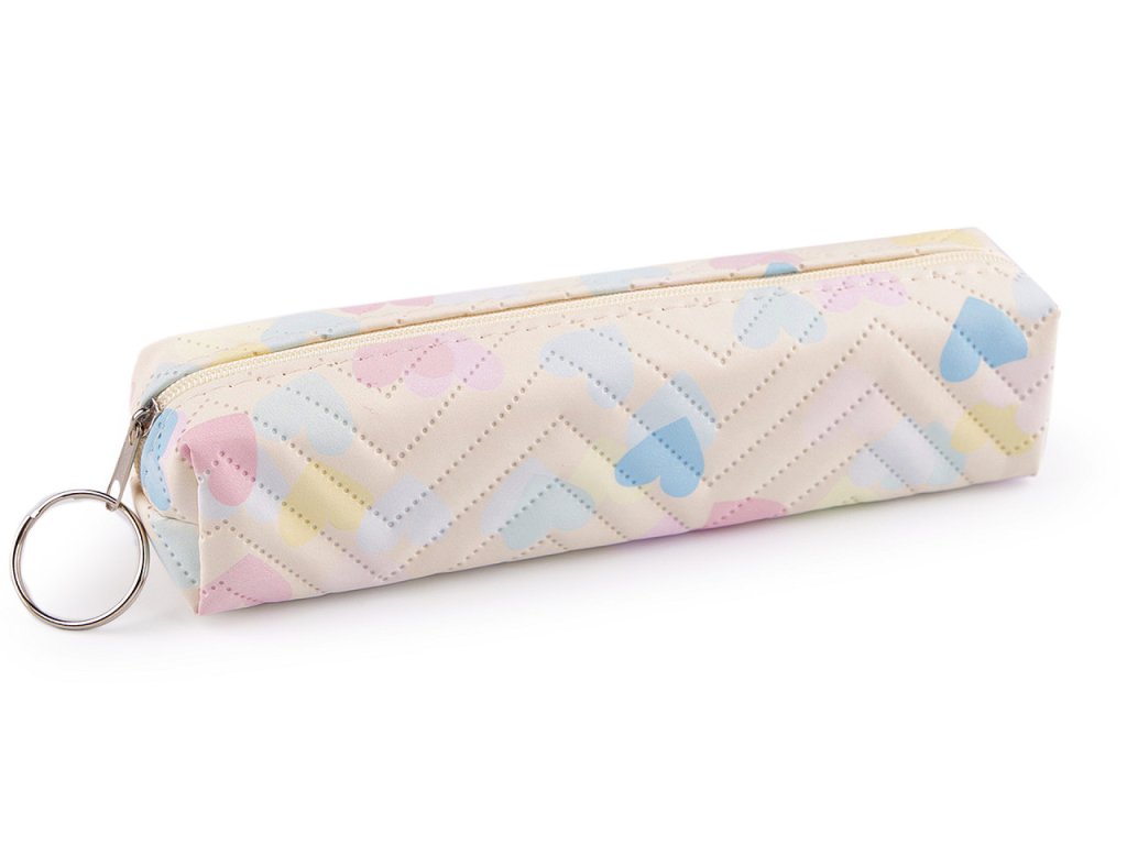 Pouzdro s jemným pastelovým potiskem srdcí využijete především na psací potřeby. Pohodlně se vejde do kabelky, může vám dělat společníka v práci či ve škole.