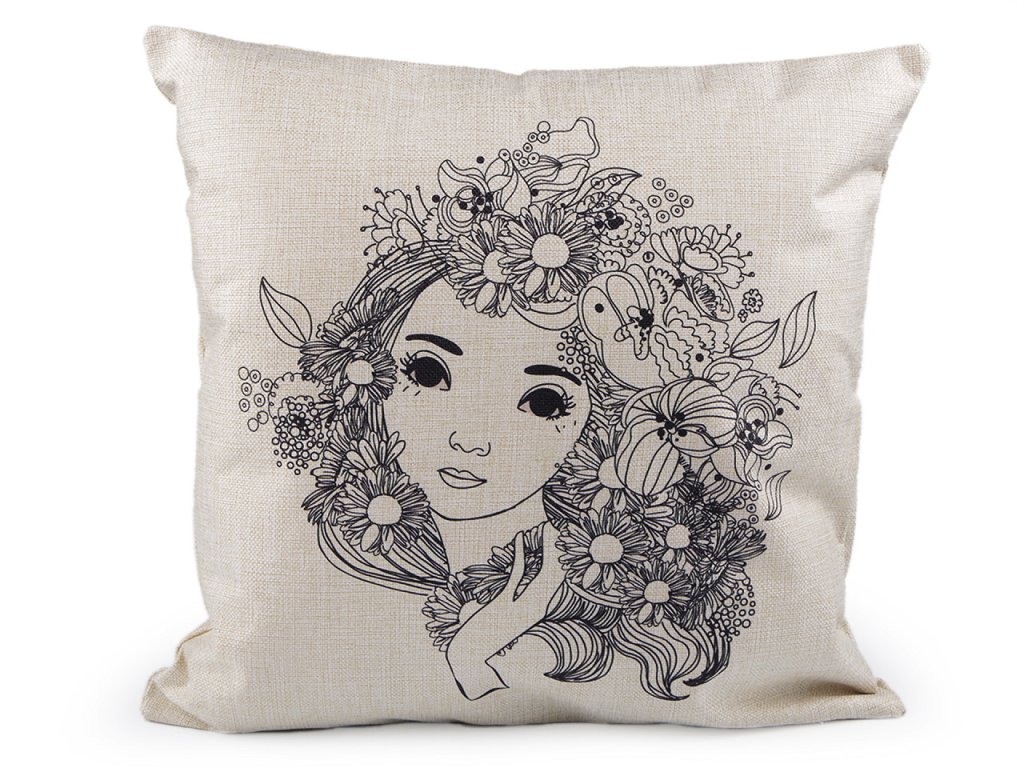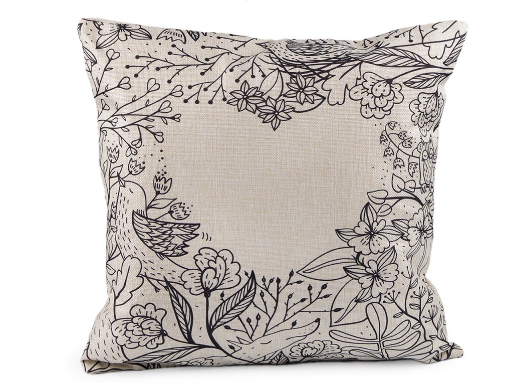 Polštář má lněný vzhled, zapíná se na zip. Předtištěný motiv je pouze na jedné straně.