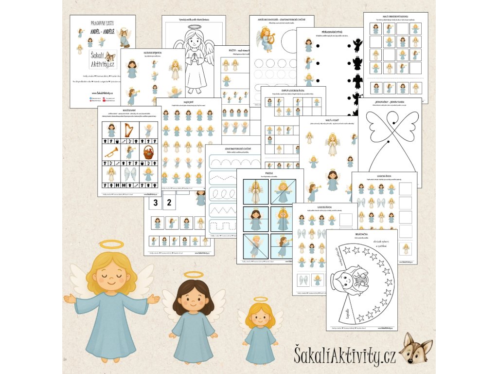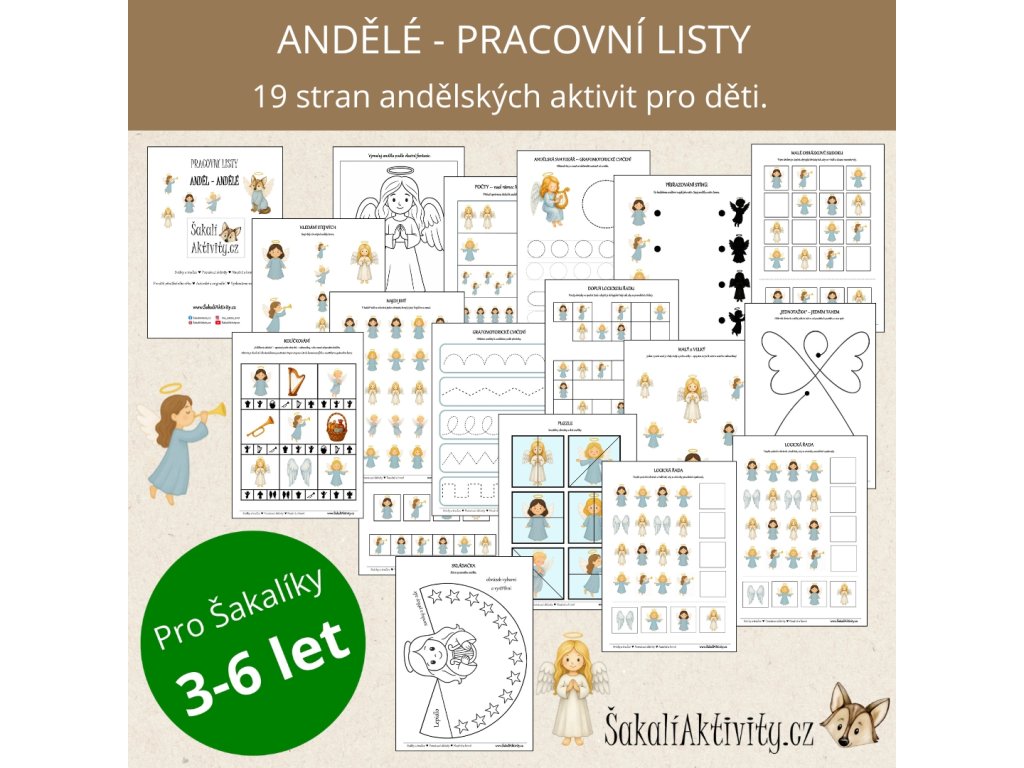 Tento soubor Pracovní listy – Andělé je určen pro předškolní a mladší školní děti (3–6 let) a nabízí 19 stran zábavných, tvořivých a edukativních úkolů s andělskou a vánoční tematikou. Každý pracovní list obsahuje název a jednoduchý návod, díky čemuž se v něm děti snadno orientují a mohou pracovat samostatně nebo s vedením dospělého.