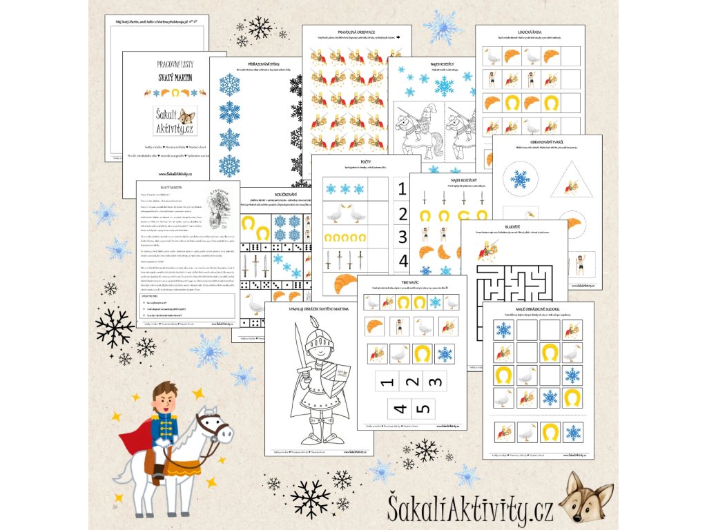 Pracovní listy – svatý Martin jsou tematicky zaměřené na svátek sv. Martina a propojují tradice s hravými vzdělávacími aktivitami pro děti. Úvodní část je věnována povídání o tomto dni – kdo sv. Martin byl a proč je jeho příběh důležitý. Děti si mohou přečíst známou legendu o plášti, odpovídat na otázky, vyplnit úkoly a tvořit v připraveném prostoru pro kresbu i omalovánku.