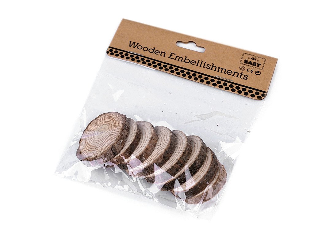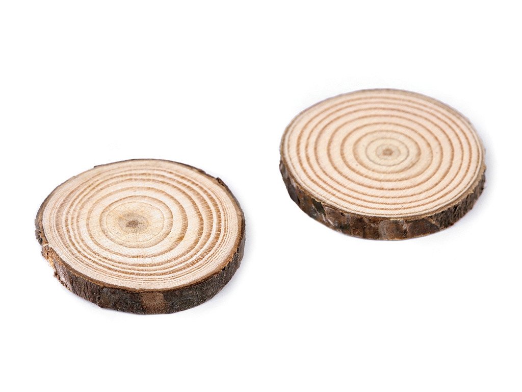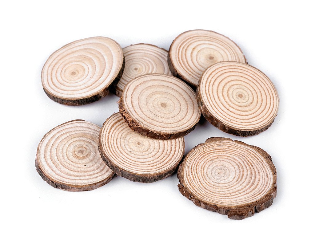 Přírodní dřevěná kolečka se hodí k dalšímu dotvoření. Jsou rovná, po obvodu mají kůru.