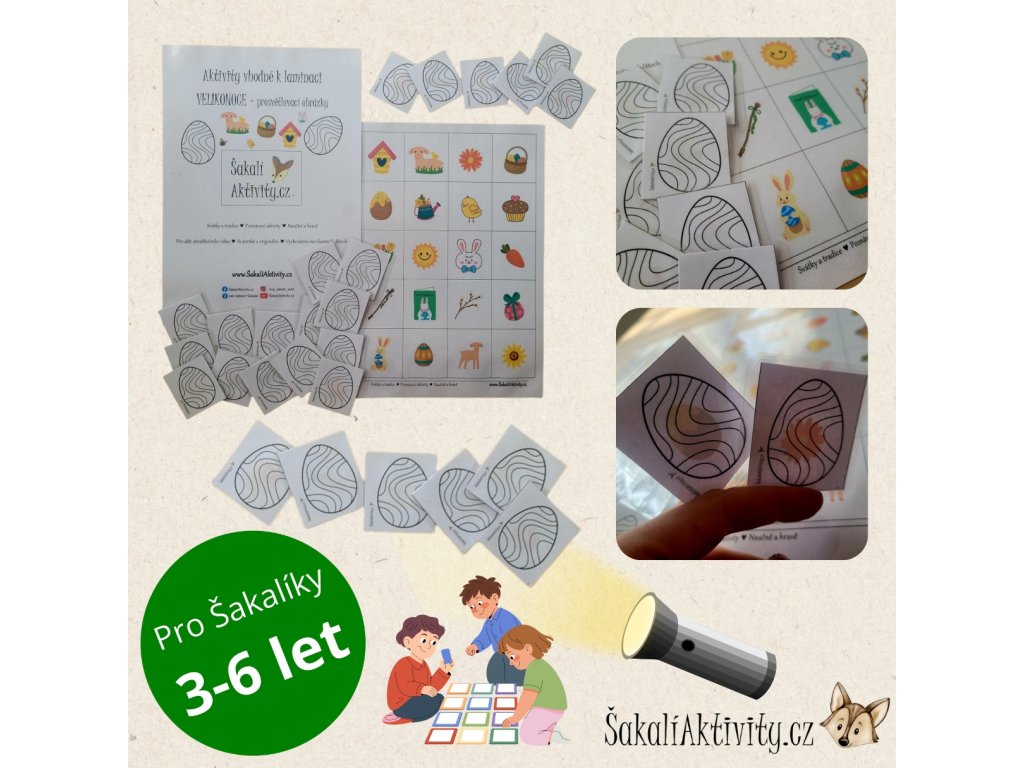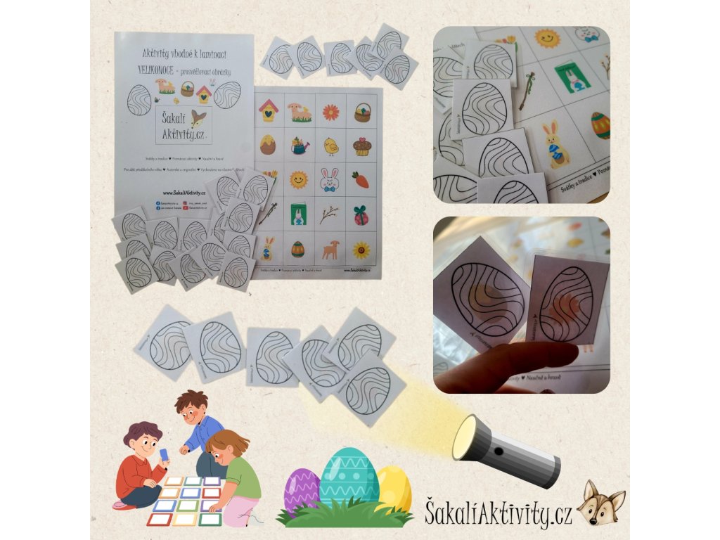Zařazení této aktivity: prosvětlovací obrázky, velikonoční aktivity pro děti, smyslové aktivity děti, světelná tabulka aktivity, velikonoce děti, zrakové vnímání děti, jemná motorika děti, aktivity k tisku, šakalí aktivity, montessori aktivity, aktivity se světlem, velikonoční pracovní aktivity, aktivity pro předškoláky, aktivity pro školku, lesní školka aktivity, velikonoční hry, smyslové hry děti, aktivity na pozornost, didaktické pomůcky, aktivity doma s dětmi, velikonoční pexeso, tematické aktivity velikonoce, vzdělávání hrou, aktivity pro malé děti, velikonoční sada aktivit