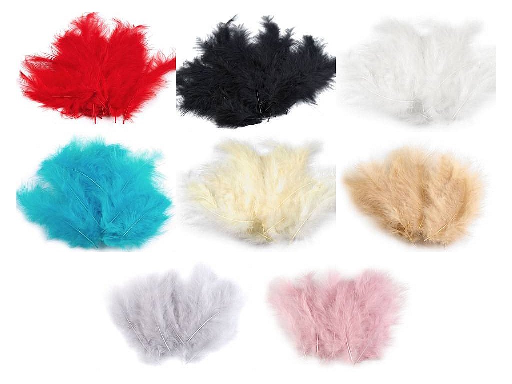 Mix se skládá z aktuálně dostupných barev. Při každé nové zásobě se mohou odstíny peří mírně lišit. Toto není důvod k reklamaci. Jelikož se u bílé barvy jedná o přírodní nebarvené peří, některé kusy nejsou čistě bílé.