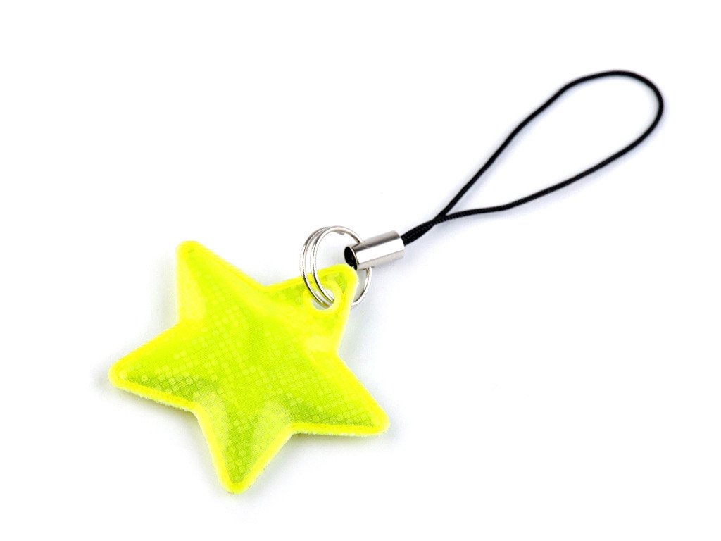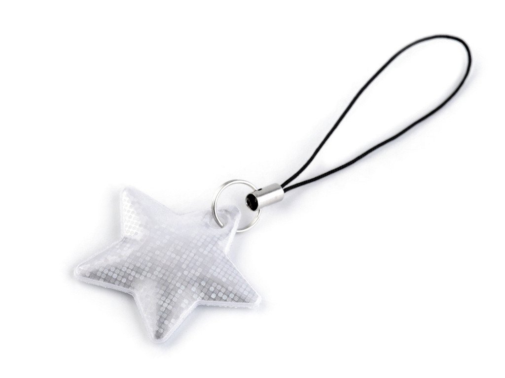Reflexní přívěsek ve tvaru hvězdy využijete na tašky, batohy, kabelky apod.