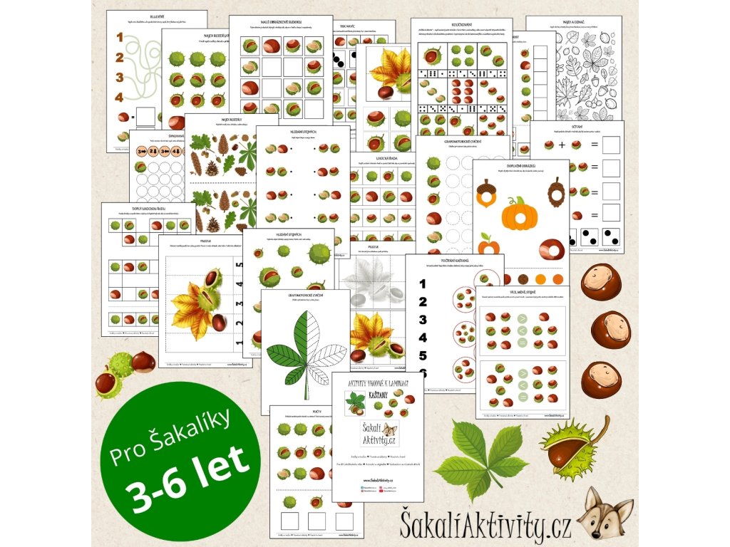 Interaktivní pracovní sešit s tematikou kaštanů je určen dětem předškolního a ranného školního věku.