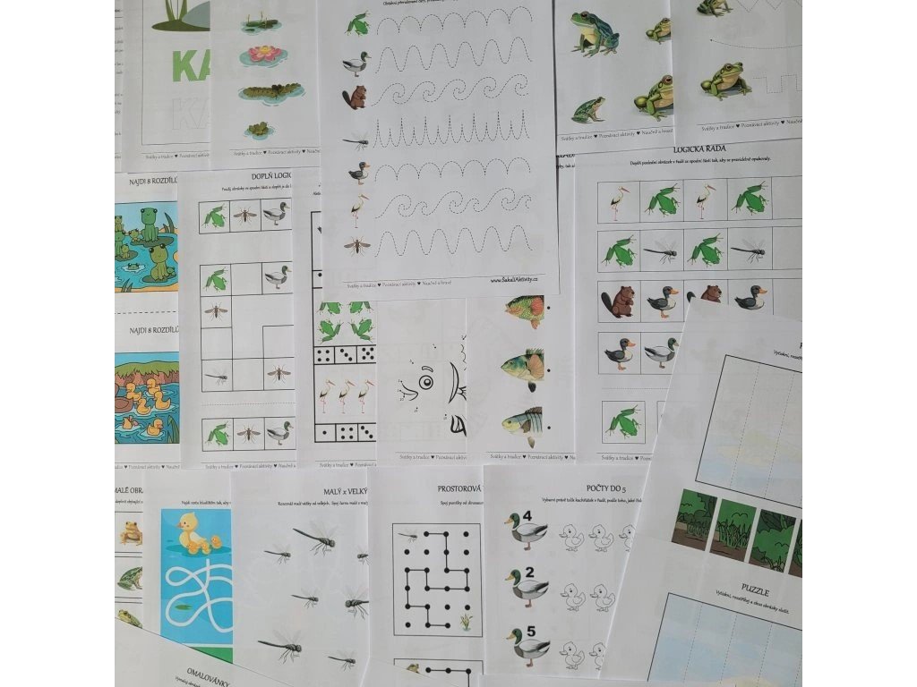 Objevujte s dětmi krásy rybníků a jejich okolí! Tento obsáhlý soubor PDF od ŠakalíAktivity.cz přináší 30 tematicky laděných stran plných hravých, edukativních úkolů. Čeká vás svět rákosí, leknínů, ryb, žab, vážek a dalších živočichů, které děti provedou aktivitami zaměřenými na rozvoj myšlení, vnímání i jemné motoriky.