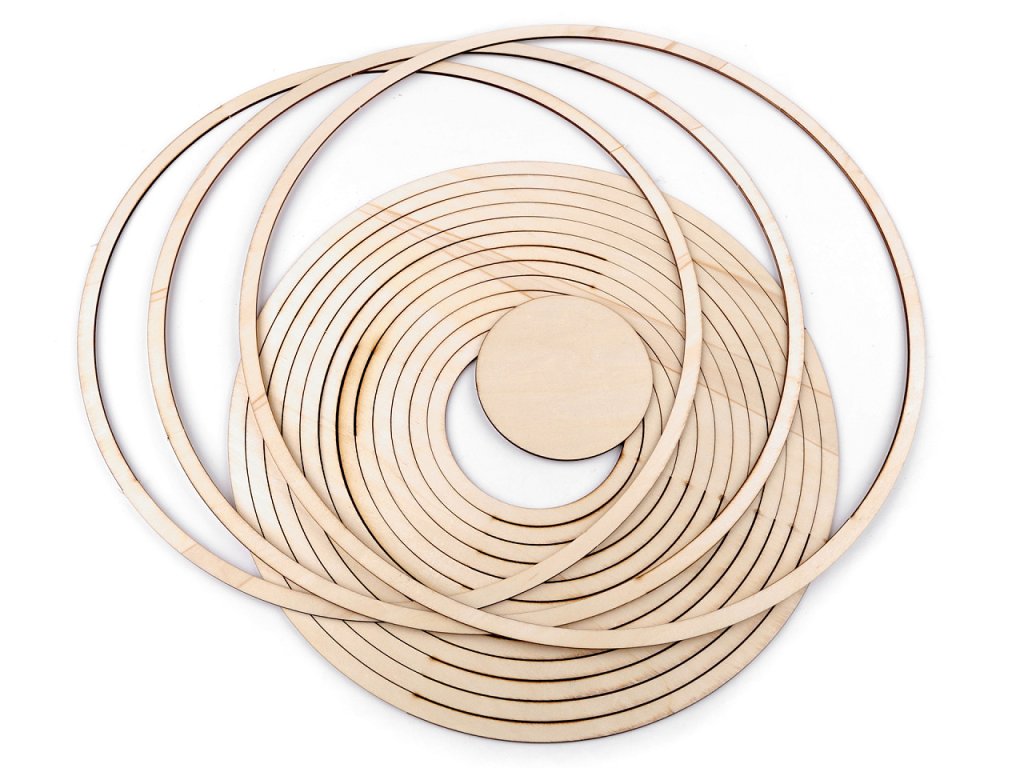 Sada dřevěných kruhů s různými průměry je vynikající na výrobu lapačů snů.
