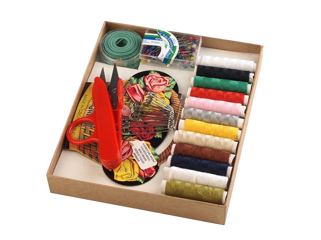 Velmi praktická sada na šití, kterou bychom mohli nazvat "krabičkou první pomoci" pro každého, kdo musí cokoliv zašít či opravit na svém oblečení. Obsahuje totiž základní potřeby, bez kterých se neobejdete.