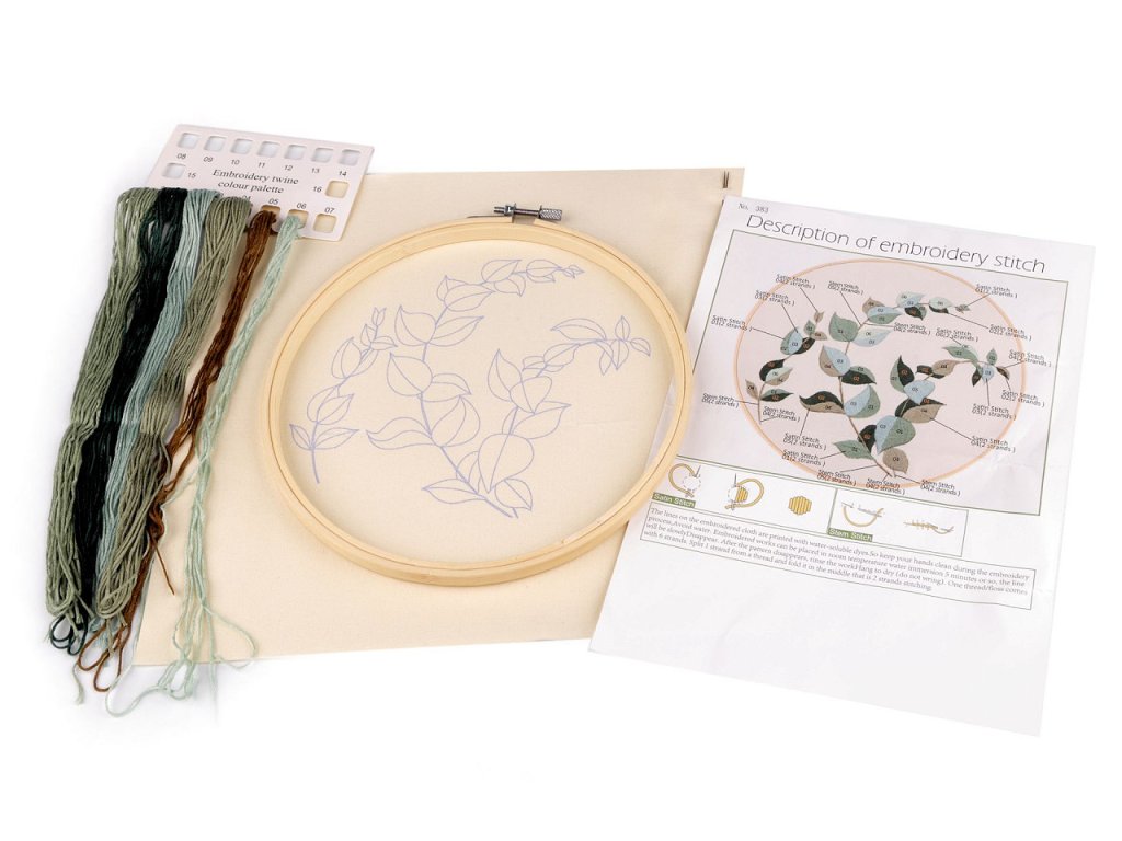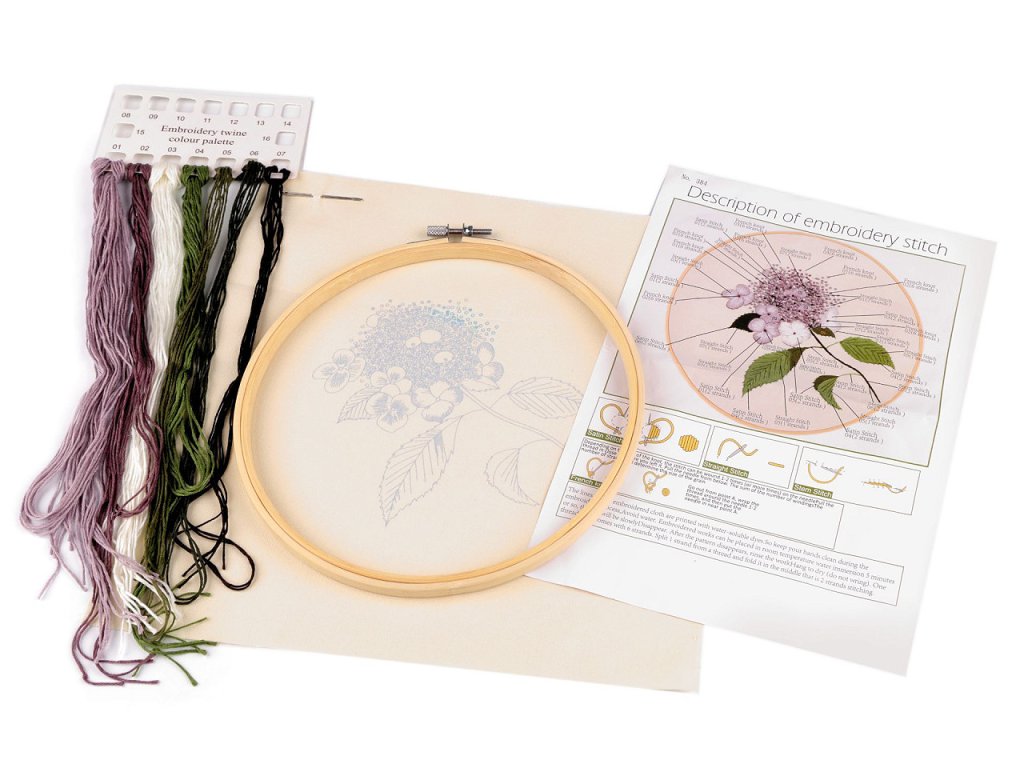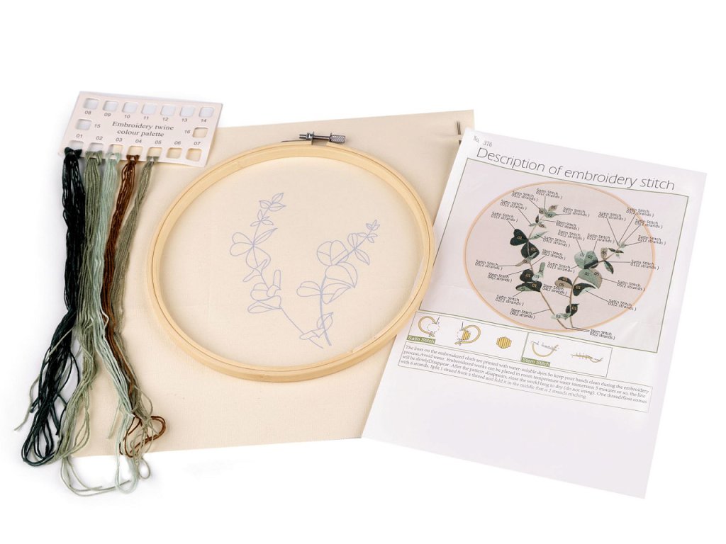 V sadě najdete tkaninu s předlohou, sadu barevných přízí, obrázkový návod, vyšívací jehly a bambusový kruh, který vám poslouží rovněž jako rámeček pro hotový obrázek.