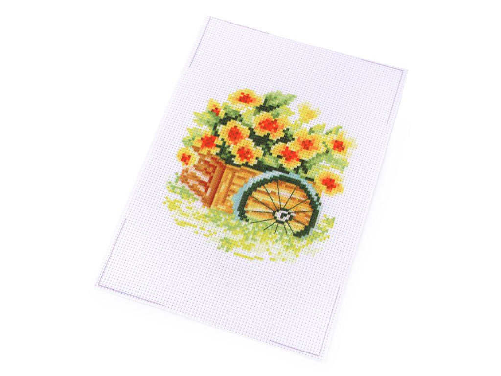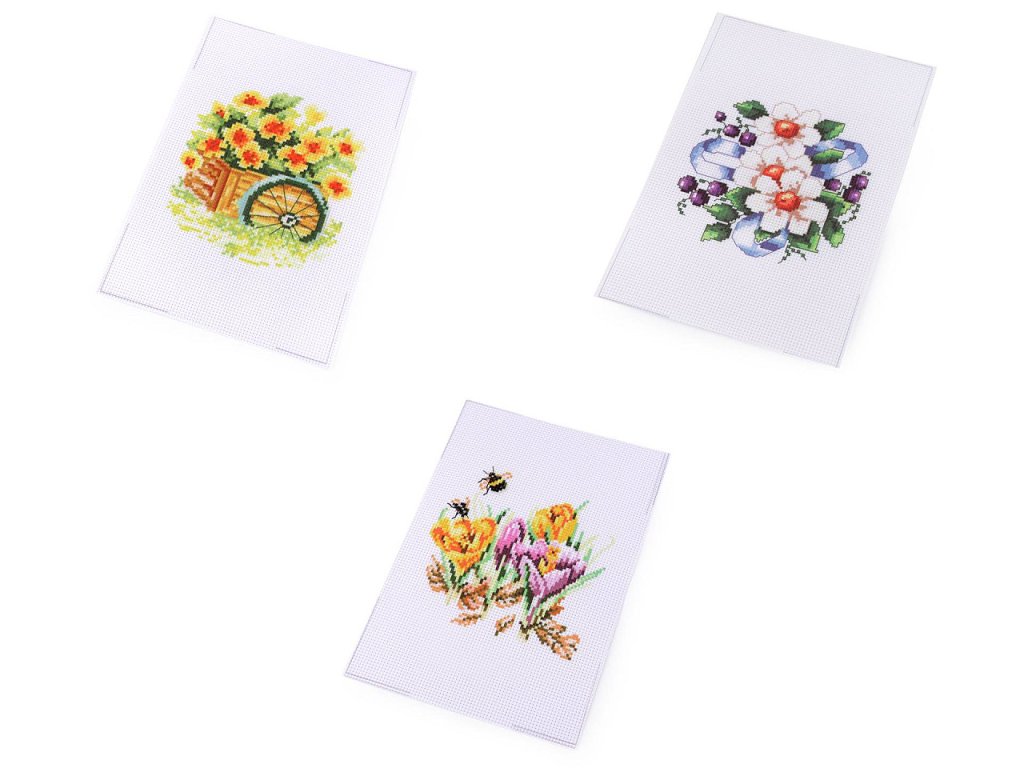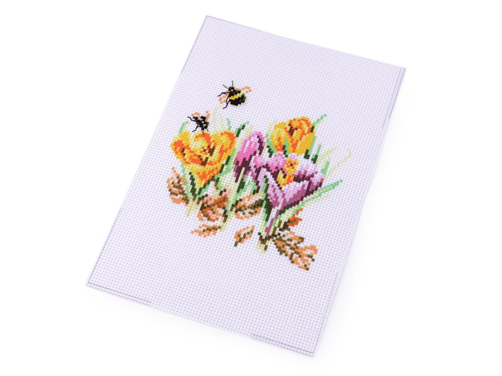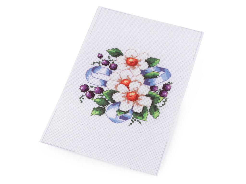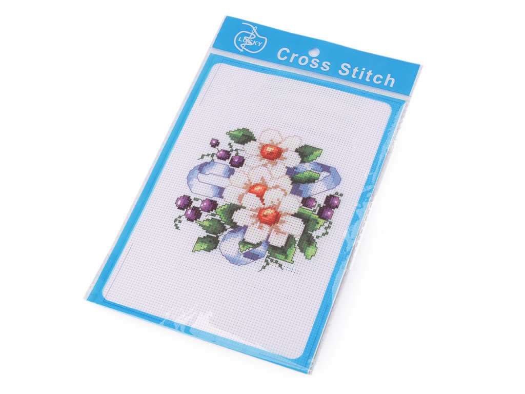 V sadě najdete tkaninu s předlohou, sadu barevných přízí, obrázkový návod na stehy a vyšívací jehlu.