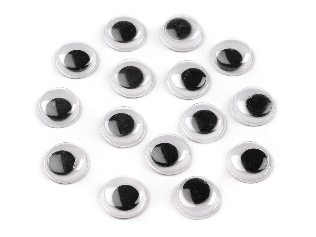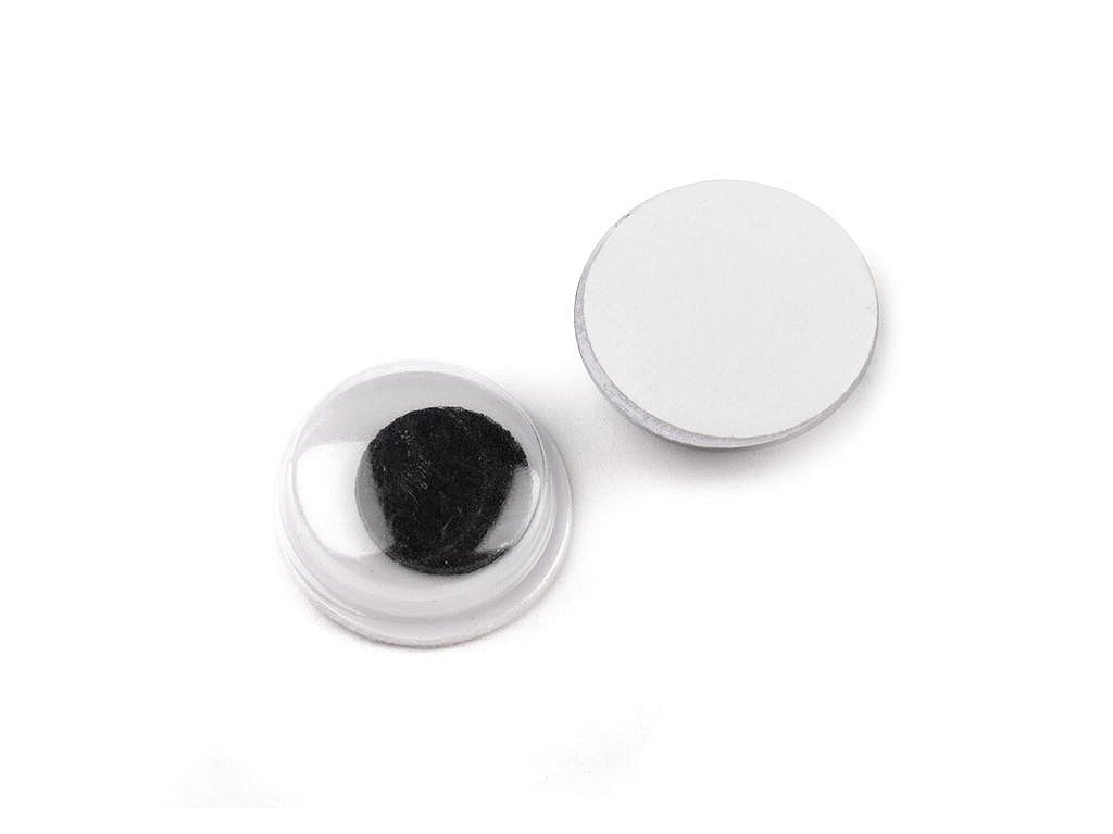 Černá čočka je pohyblivá. Spodní strana je opatřená samolepicí fólií. Nalepení očí je snadné.