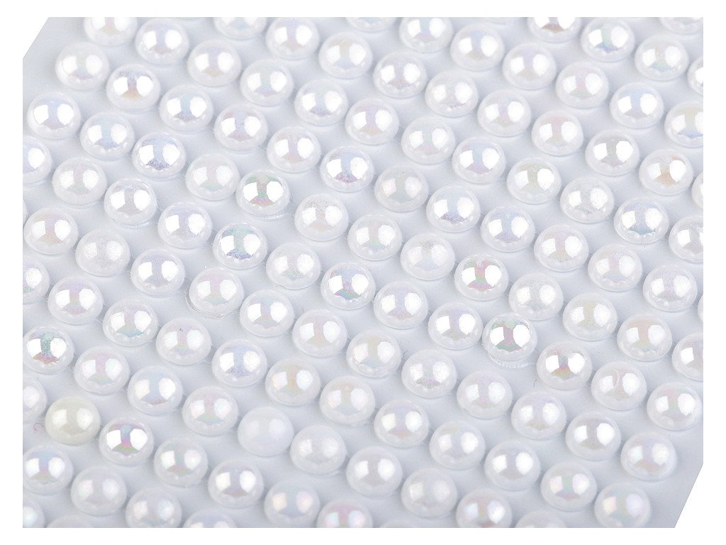 Perly v řadách jsou navzájem spojené lepicím proužkem, takže tvoří pásky. Celkem zde najdete 20 pásků (v každém je 13 perel). Můžete je i jednotlivě nastříhat.