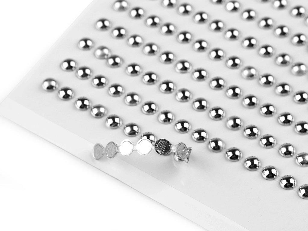 Samolepicí půlkulaté perly s metalickým leskem využijete k dekorování v technice scrapbooking.