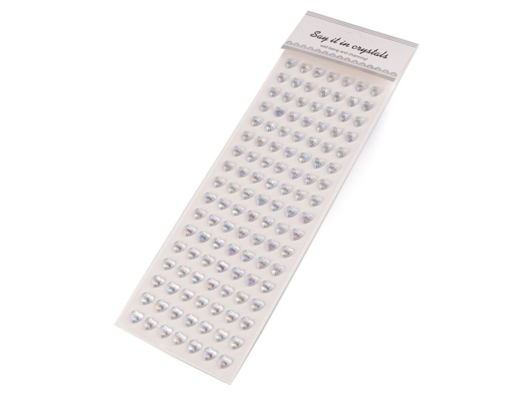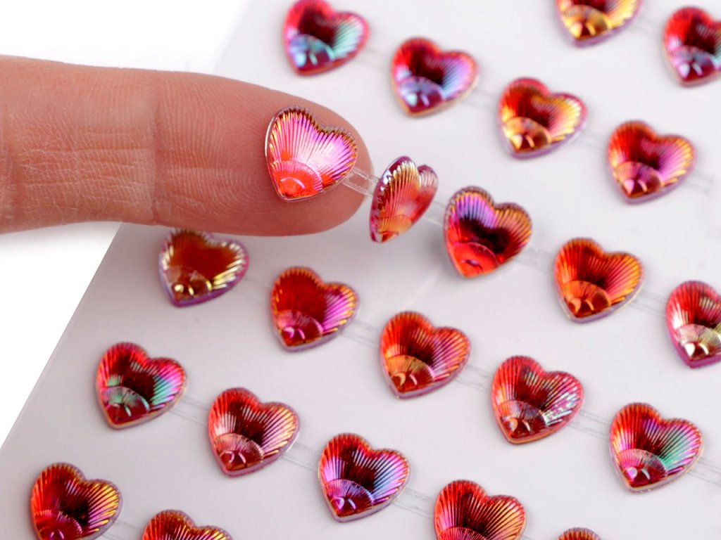 Kamínky ve tvaru srdcí jsou velice poutavé, na povrchu mají jemný proužkovaný prolis. Všechny jsou nalepené na jednom archu podkladové folie, ze které je stačí sejmout. Srdíčka jsou v řadách navzájem spojená lepícím proužkem, takže tvoří pásky.