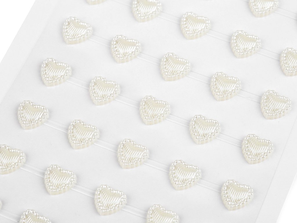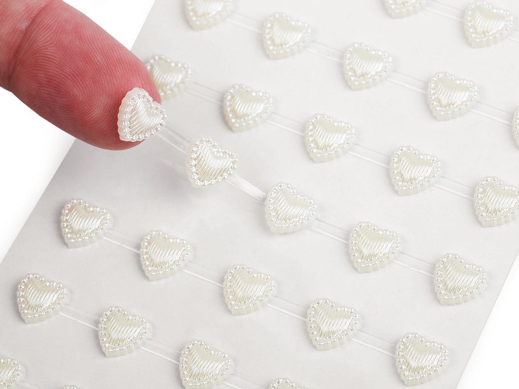 Kamínky ve tvaru srdcí jsou velice poutavé, mají perlový lesk. Všechny jsou nalepené na jednom archu podkladové folie, ze které je stačí sejmout. Srdíčka jsou v řadách navzájem spojená lepícím proužkem, takže tvoří pásky.
